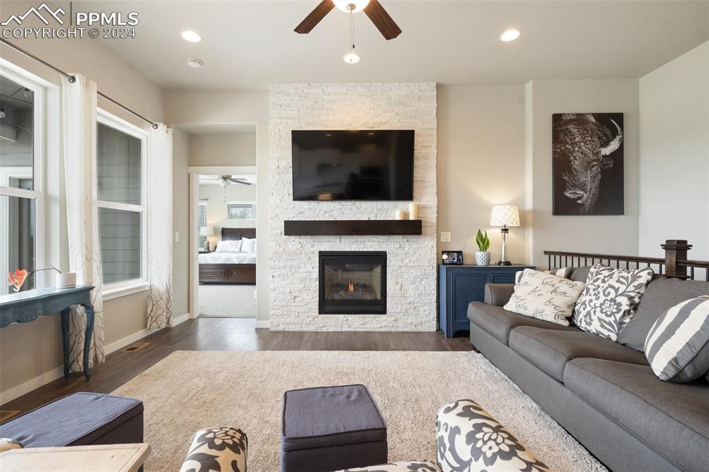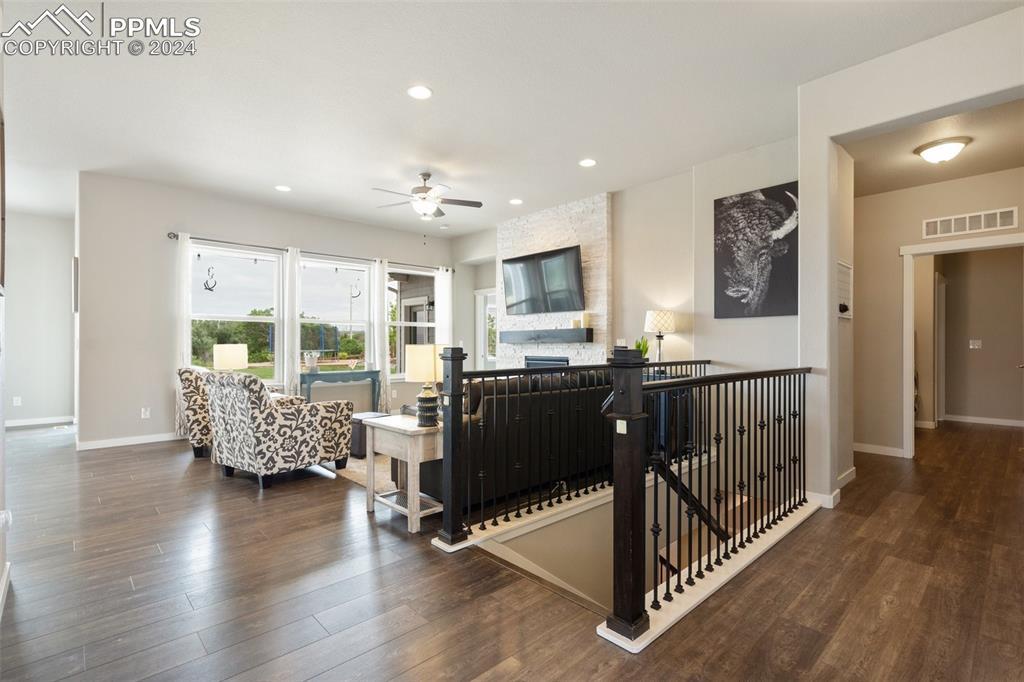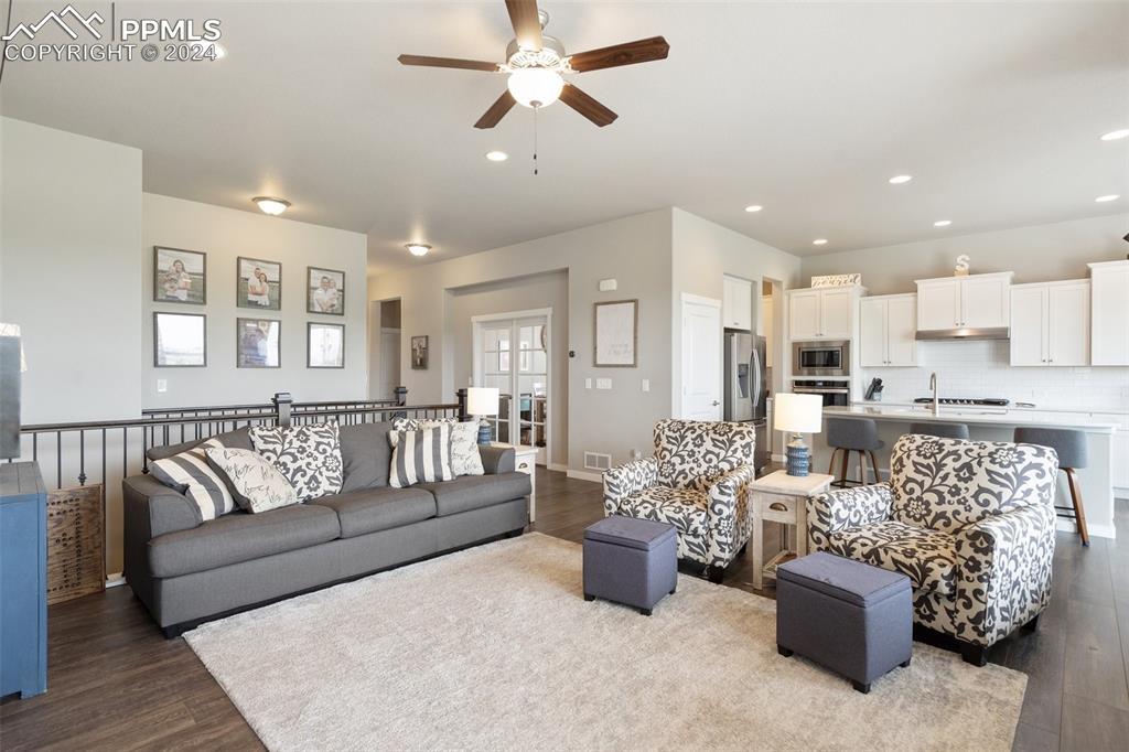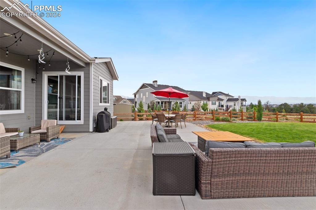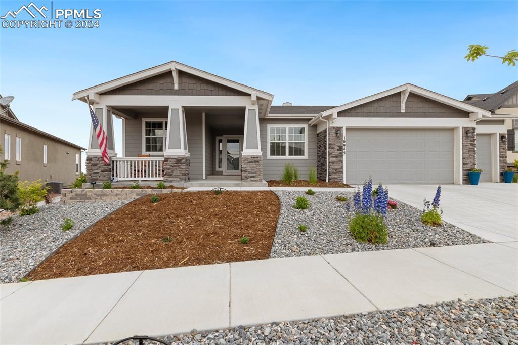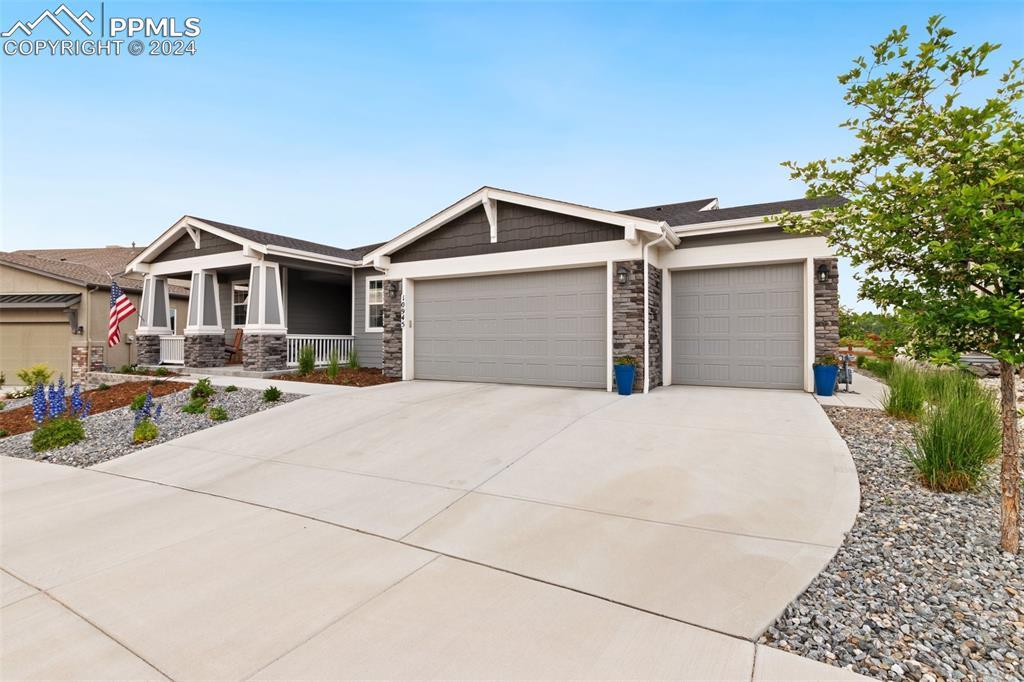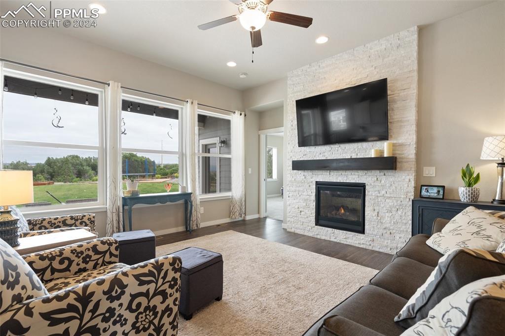 Beautifully maintained "Paradise" ranch-style home with fantastic mountain views, backing to open space. Close to the USAFA and all the newest shops and restaurants the northside has to offer. The main level has beautiful luxury wood laminate plank flooring and stacked ledgestone fireplace. Enjoy the gourmet kitchen with gas cooktop, stainless steel appliances, coffee bar, dining area and much more. Enjoy having a main level office or formal dining room. The expanded main level gives you 3 spacious bedrooms on the main floor with high end carpet. The main level primary retreat features a luxury en-suite bath with expanded spa style shower. Primary has access to the laundry room, and the owner's entrance. The lower level offers a huge family room perfect for entertaining and is plumbed for a wet bar, and 2 additional bedrooms, full bath, and an unfinished room to use for storage or add a Jr suite. A spacious 3 car garage with 4ft extension. The fully fenced and landscaped backyard with wireless irrigation system. Large covered patio, and raised beds. Fantastic mountain views and a very open back yard! This home has so much to offer!