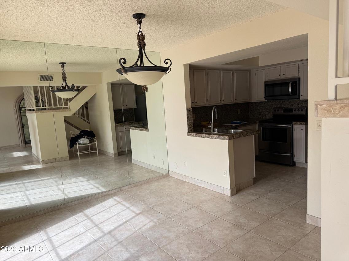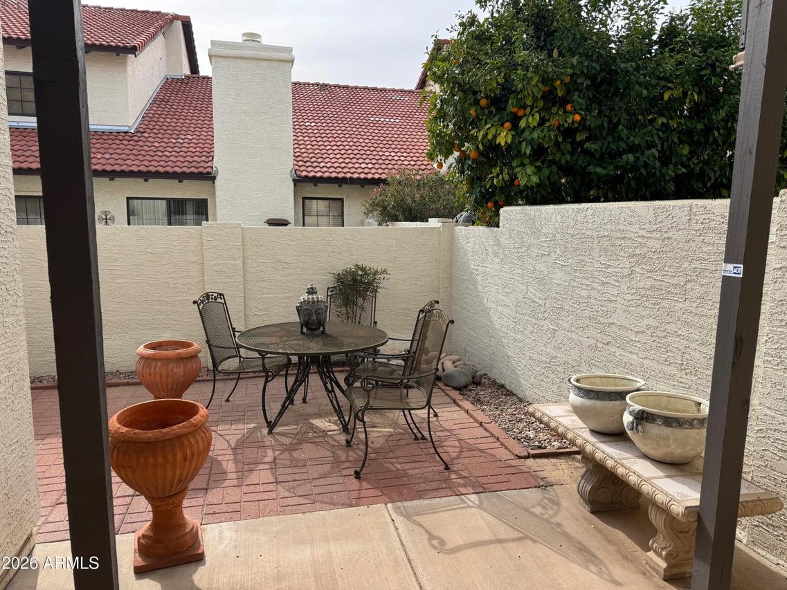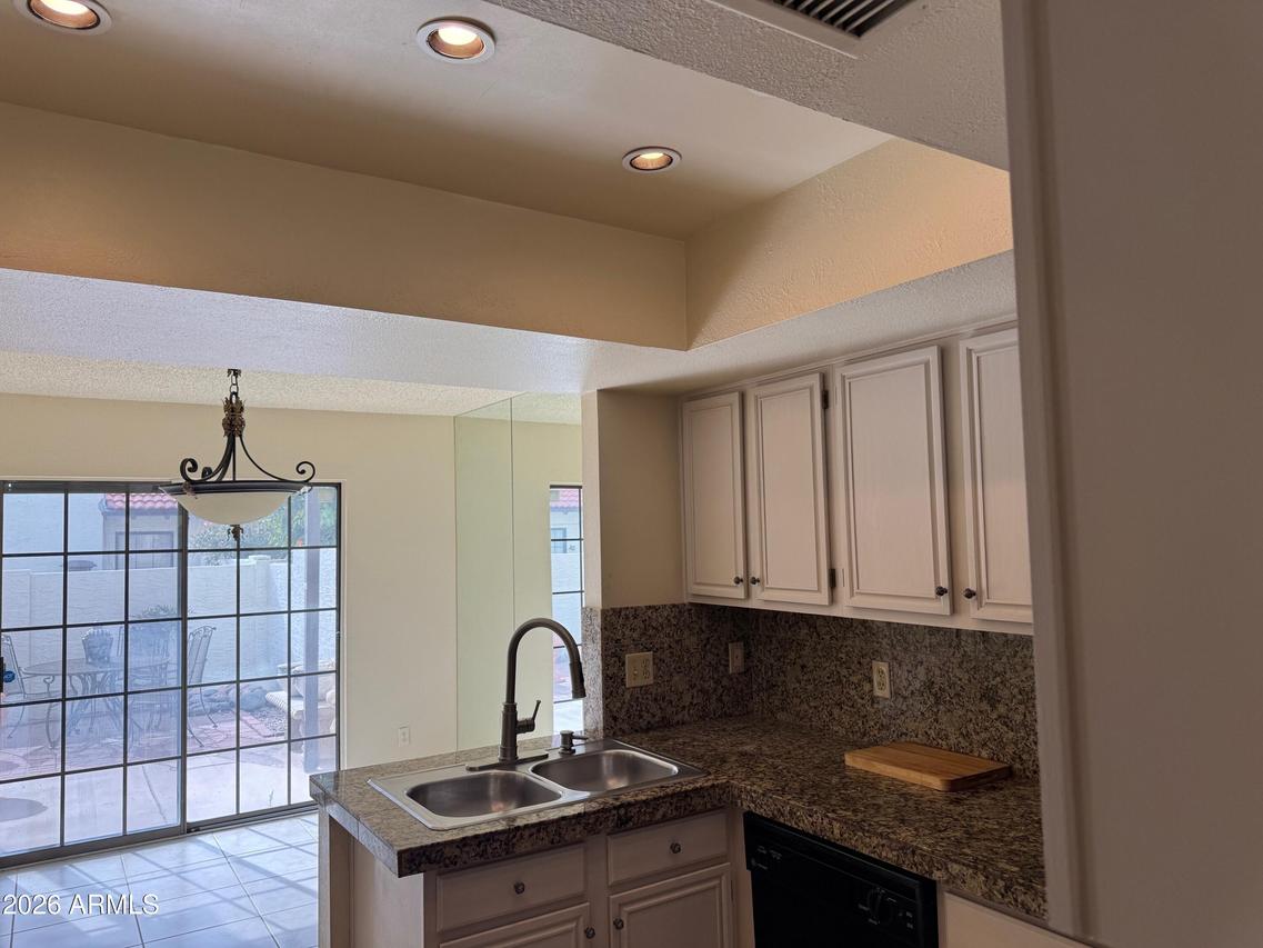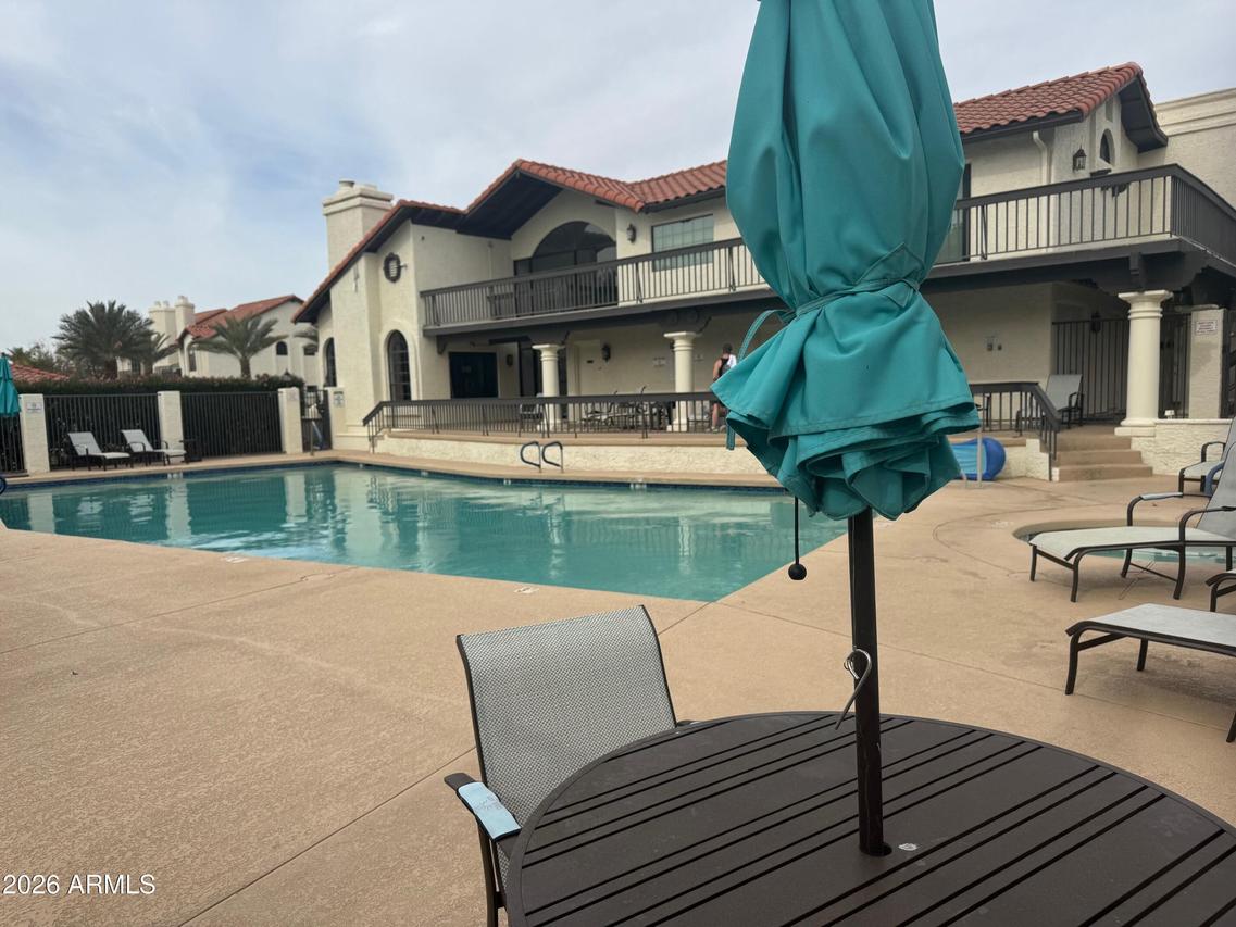 Beautiful La Contessa townhome ideally located in the heart of Scottsdale. This highly sought-after floorplan offers 2 bedrooms, 2 baths, and a versatile library loft bonus space. Soaring vaulted ceilings create a bright, open atmosphere throughout. The updated kitchen features white cabinetry, granite countertops, stainless steel appliances, and opens to a cheerful breakfast area with a designer light fixture. The open-concept living space includes a cozy wood-burning fireplace and access to a private covered patio. Neutral porcelain and travertine tile flow throughout, with new carpet on the stairs. Enjoy a 2-car garage with ample extra storage. Community amenities include a heated pool and spa, clubhouse, and workout facility.