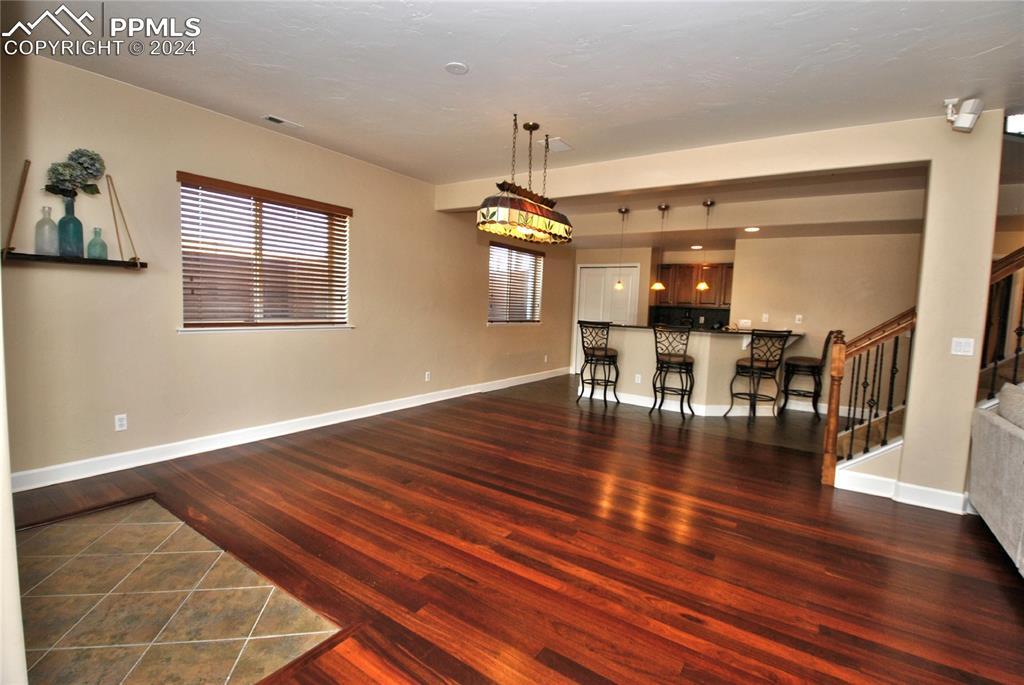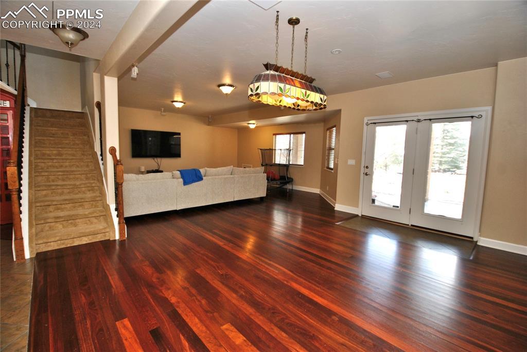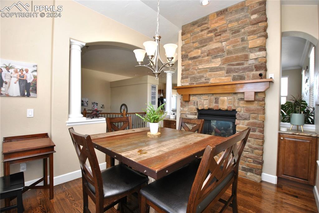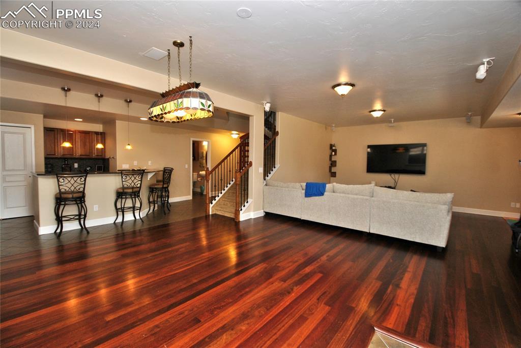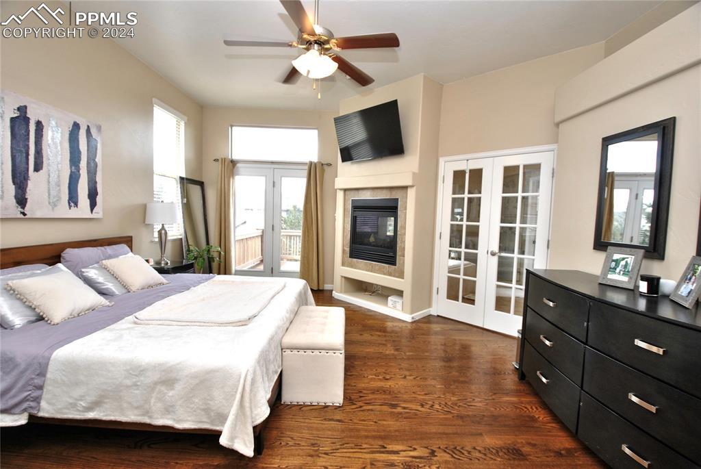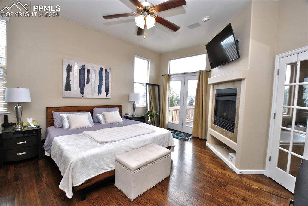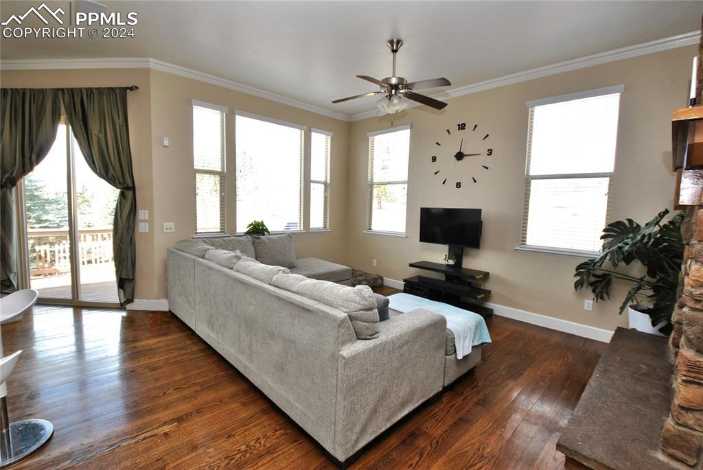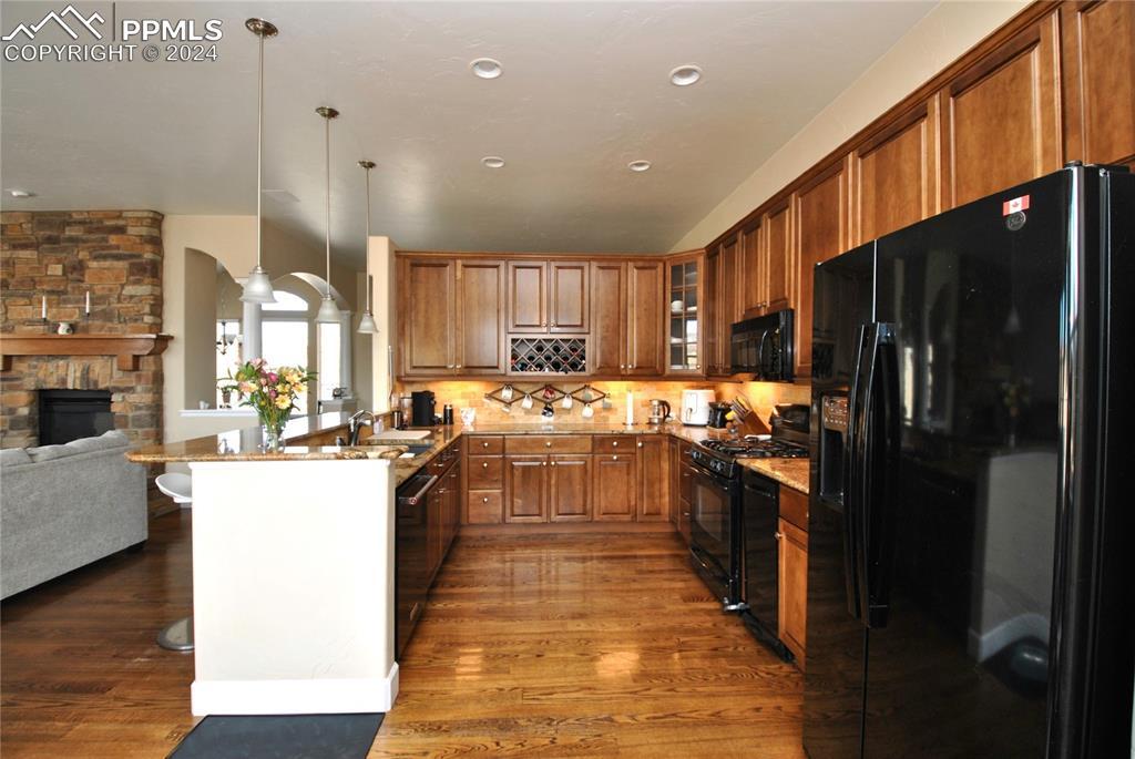 BEAUTIFUL FLYING HORSE!! Classic Homes "Cuchara" model rancher with Spectacular Pikes Peak & Front Range Views. Enjoy the full length trex deck and sound system or the walkout patio to enjoy the views and the Gorgeous designer landscaping. Hardwood floors throughout most of the main level flows into this spacious living home with big eat in kitchen with granite countertops, appliances and hickory cabinets that overlook the living area accented by gas stone fireplace that flows into dining area. Huge master suite featuring luxury 5 piece bath and huge closet plus bonus bedroom/study with French door entry. Fully finished walkout basement with Extended height ceiling, huge family and game rooms with Australian "Jarrah" wood floors and built in wet bar. Surround sound, 2 more huge bedroom's and 2 more tiled baths. This is loaded with more extras like Central A/C, Custom blinds, 2 tone paint package, stamped concrete patio and fireplace, prewired for hot tub, sprinkler system, steel garage shelving, all in District 20 Schools!!