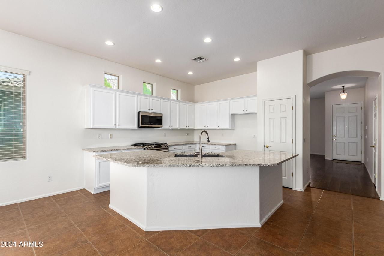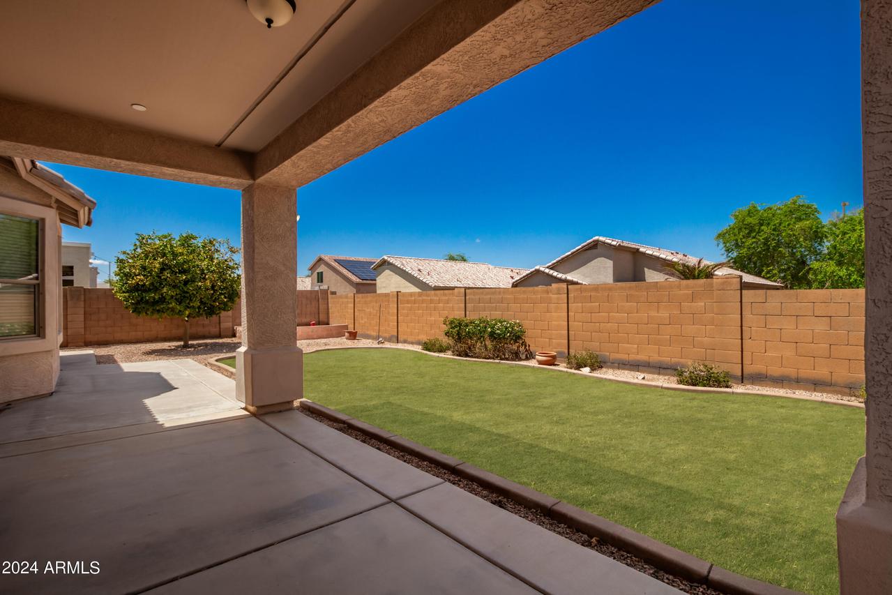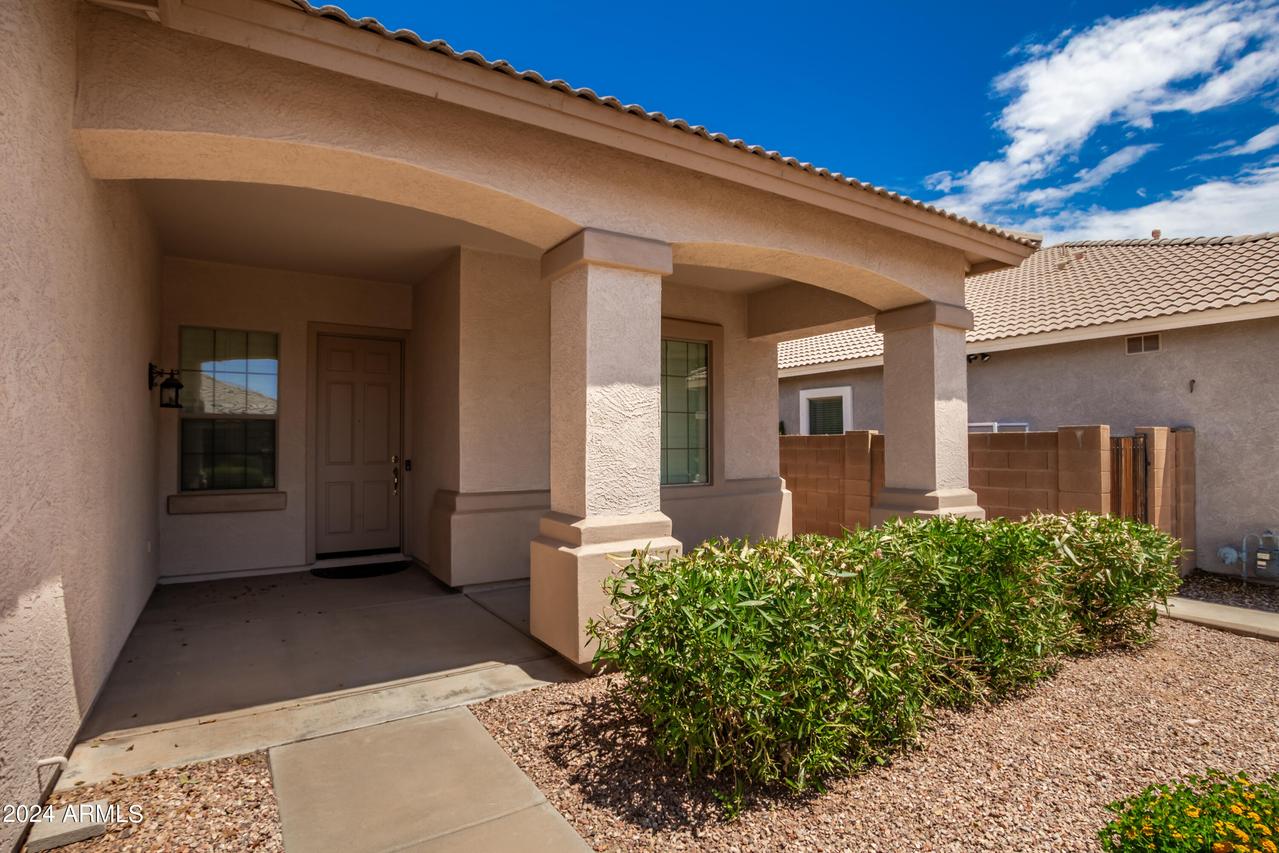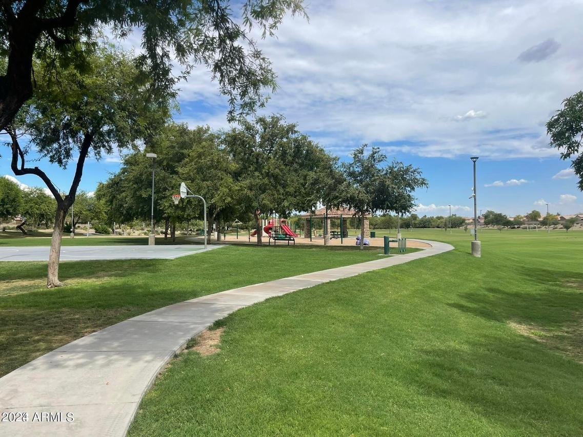 Honey Stop the Car! Showcasing Pride of Ownership, this updated property is a true gem * 4BR, 2BA, 3-car Garage * Desirable Dreaming Summit in Litchfield Park * North/South Exposure * Interior features 10ft ceilings throughout * At the entry, you'll find a formal living and dining area, complete with elegant wood shutters and gleaming laminate floors. The remodeled open kitchen to great room features gas cooking, stainless steel appliances, and abundant counter space with slab granite. All-white wood cabinets with added crown molding, soft-close hinges, and drawers add a touch of elegance. The bay window in the dining area, along with the pantry and oversized center island with a long-neck faucet and deep undermount sink, enhances the kitchen's design. Clerestory windows . . . allow natural light to fill the great room, further elevating the kitchen's appeal. The spacious Primary suite boasts a double-door entry, laminate floors, and a bay window. The walk-in closet is illuminated by small clerestory windows, allowing natural light without sacrificing wall space. The ensuite bathroom includes a walk-in shower, block windows above a separate garden tub, and a private toilet room with a frosted glass window for added light and privacy. The secondary bedrooms are equally spacious, each with laminate flooring, ceiling fans, and ample closet space. Outside, the backyard offers a serene retreat with an extended covered concrete patio, perfect for relaxation or entertaining. The grass yard, while currently dormant, adds to the charm and photos have been enhanced for appeal. There is a mature citrus tree and the elevated herb/vegetable bed allowing for easy gardening. The concrete walkway around the side of the property provides convenient access to the garage and double gate. The 3-car garage has painted floors and is thoughtfully equipped with built-in cabinets with work counter, a separate utility sink with upper and lower cabinets, and a water softener system. THIS 4-BEDROOM HOME IS EXCEPTIONAL AND IS NOT TO BE MISSED * SEE IT TODAY! CLOSE TO PARKS & SCHOOLS * GOLF * NEARBY SHOPPING, DINING & ENTERTAINMENT * GLENDALE SPORTS & ENTERTAINMENT DISTRICT * DESERT DIAMOND CASINO * WILDLIFE WORLD ZOO AQUARIUM & SAFARI PARK * STATE FARM STADIUM * TANGER OUTLETS *
