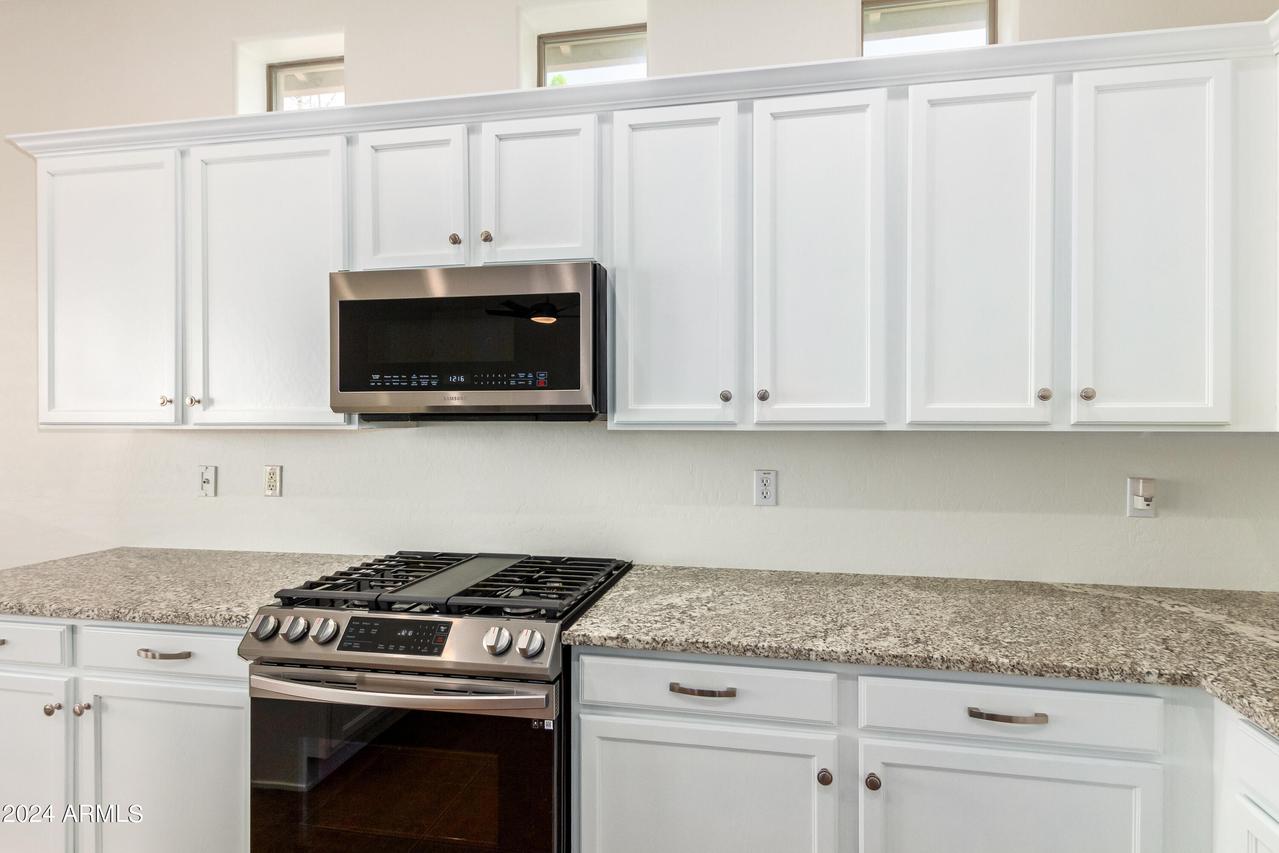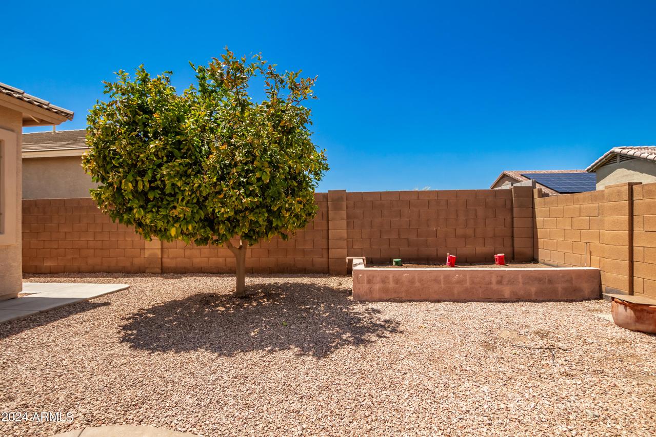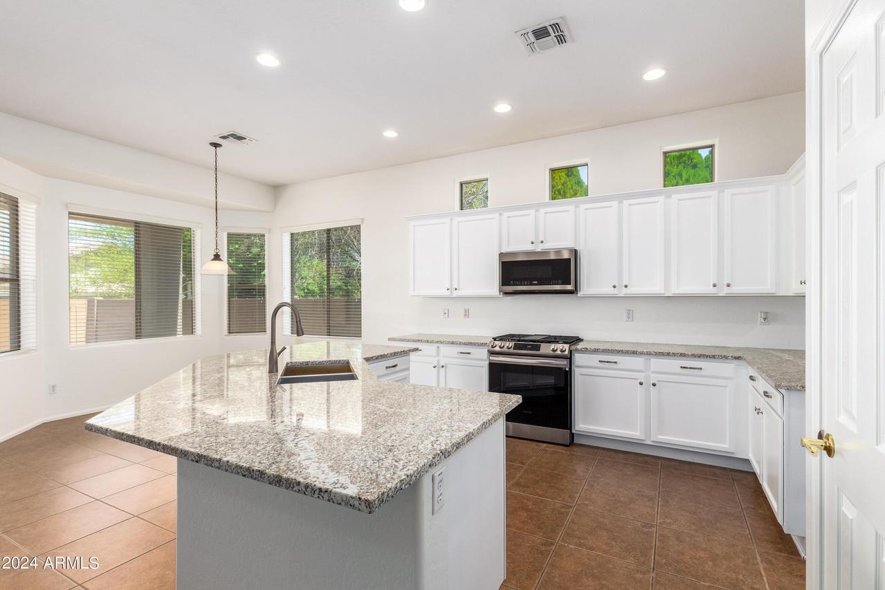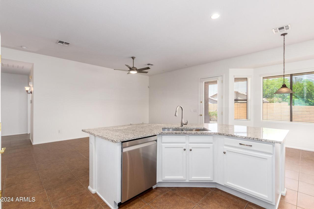 Honey Stop the Car! Showcasing Pride of Ownership, this updated property is a true gem * 4BR, 2BA, 3-car Garage * Desirable Dreaming Summit in Litchfield Park * North/South Exposure * Interior features 10ft ceilings throughout * At the entry, you'll find a formal living and dining area, complete with elegant wood shutters and gleaming laminate floors. The remodeled open kitchen to great room features gas cooking, stainless steel appliances, and abundant counter space with slab granite. All-white wood cabinets with added crown molding, soft-close hinges, and drawers add a touch of elegance. The bay window in the dining area, along with the pantry and oversized center island with a long-neck faucet and deep undermount sink, enhances the kitchen's design. Clerestory windows . . . allow natural light to fill the great room, further elevating the kitchen's appeal. The spacious Primary suite boasts a double-door entry, laminate floors, and a bay window. The walk-in closet is illuminated by small clerestory windows, allowing natural light without sacrificing wall space. The ensuite bathroom includes a walk-in shower, block windows above a separate garden tub, and a private toilet room with a frosted glass window for added light and privacy. The secondary bedrooms are equally spacious, each with laminate flooring, ceiling fans, and ample closet space. Outside, the backyard offers a serene retreat with an extended covered concrete patio, perfect for relaxation or entertaining. The grass yard, while currently dormant, adds to the charm and photos have been enhanced for appeal. There is a mature citrus tree and the elevated herb/vegetable bed allowing for easy gardening. The concrete walkway around the side of the property provides convenient access to the garage and double gate. The 3-car garage has painted floors and is thoughtfully equipped with built-in cabinets with work counter, a separate utility sink with upper and lower cabinets, and a water softener system. THIS 4-BEDROOM HOME IS EXCEPTIONAL AND IS NOT TO BE MISSED * SEE IT TODAY! CLOSE TO PARKS & SCHOOLS * GOLF * NEARBY SHOPPING, DINING & ENTERTAINMENT * GLENDALE SPORTS & ENTERTAINMENT DISTRICT * DESERT DIAMOND CASINO * WILDLIFE WORLD ZOO AQUARIUM & SAFARI PARK * STATE FARM STADIUM * TANGER OUTLETS *