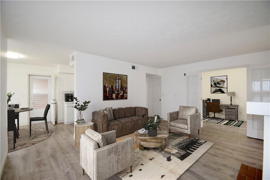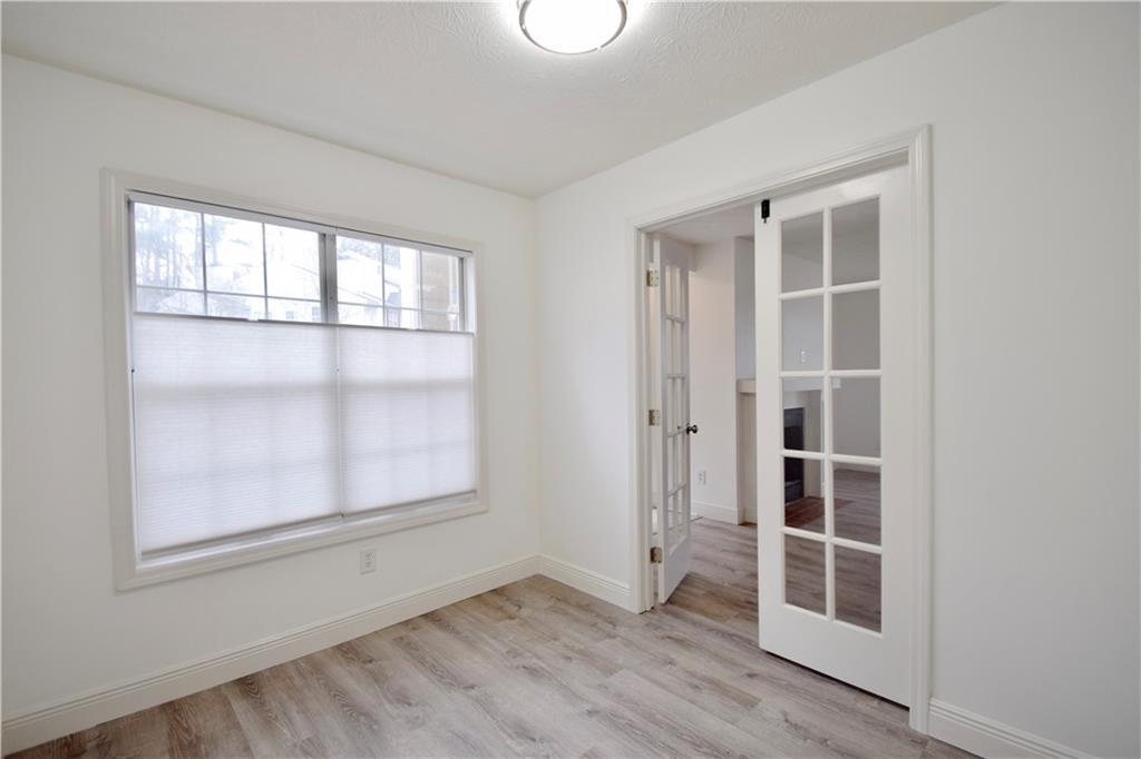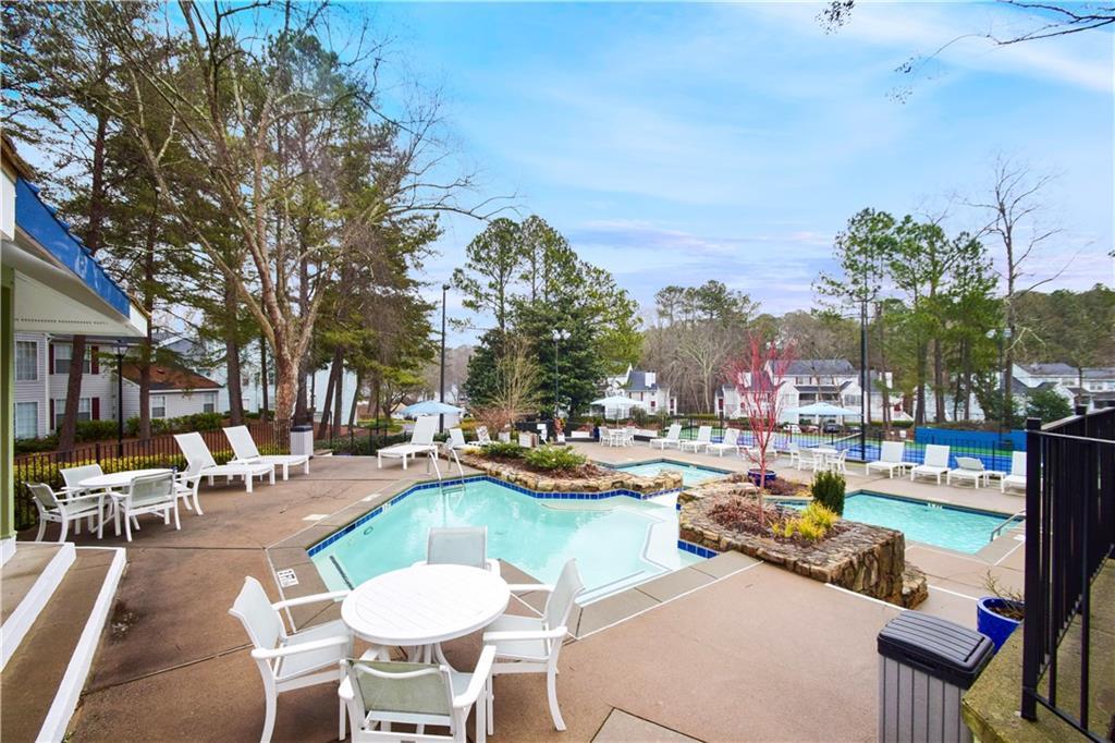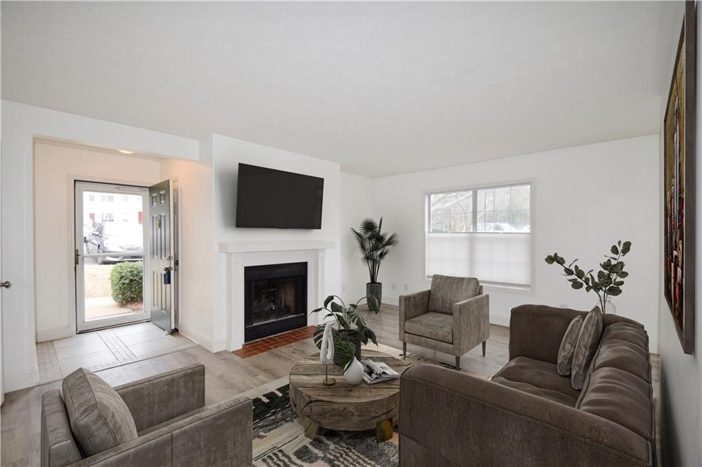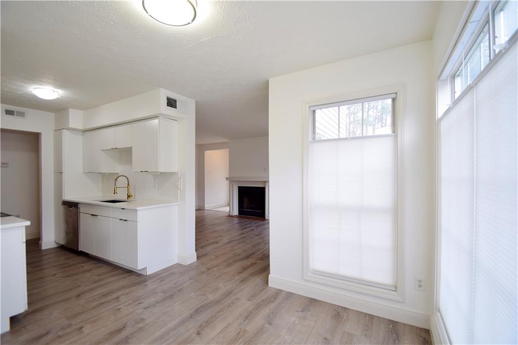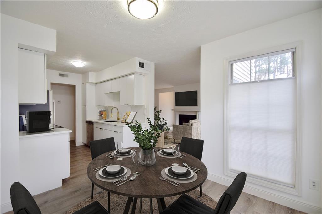 Welcome to carefree, one-level condo living situated in fabulous swim/tennis community in beautiful Peachtree Corners! Totally renovated home including all NEW luxury vinyl plank flooring, NEW kitchen cabinetry and stainless-steel appliances, NEW kitchen solid surface counters and backsplash, NEW lighting, NEW HVAC, NEW interior paint, NEW vanity and commode, NEW doors, NEW window shades and more! Additional features include stepless tile entry, one bedroom and bath PLUS a flex room for office/nursery/den or Peloton space! Open fireside Great Room w/gas fireplace for cozy evenings at home! Entertaining will be a breeze around your updated, bright kitchen and dining areas with French door leading to private, covered porch! Spacious Master with huge walk-in closet opens to private, covered porch – perfect for your morning coffee! In-unit laundry room plus storage space for added convenience! Meet your neighbors at the Resort-style and very well maintained amenities including pools with waterfall and covered sitting areas, newly surfaced tennis courts, BBQ area and lush landscaping! Conveniently located just minutes to excellent shopping, entertainment, restaurants, parks, walking trails, Chattahoochee River, The Forum, Peachtree Corners Town Center, concerts, award winning schools, expressways and all that Atlanta has to offer!
