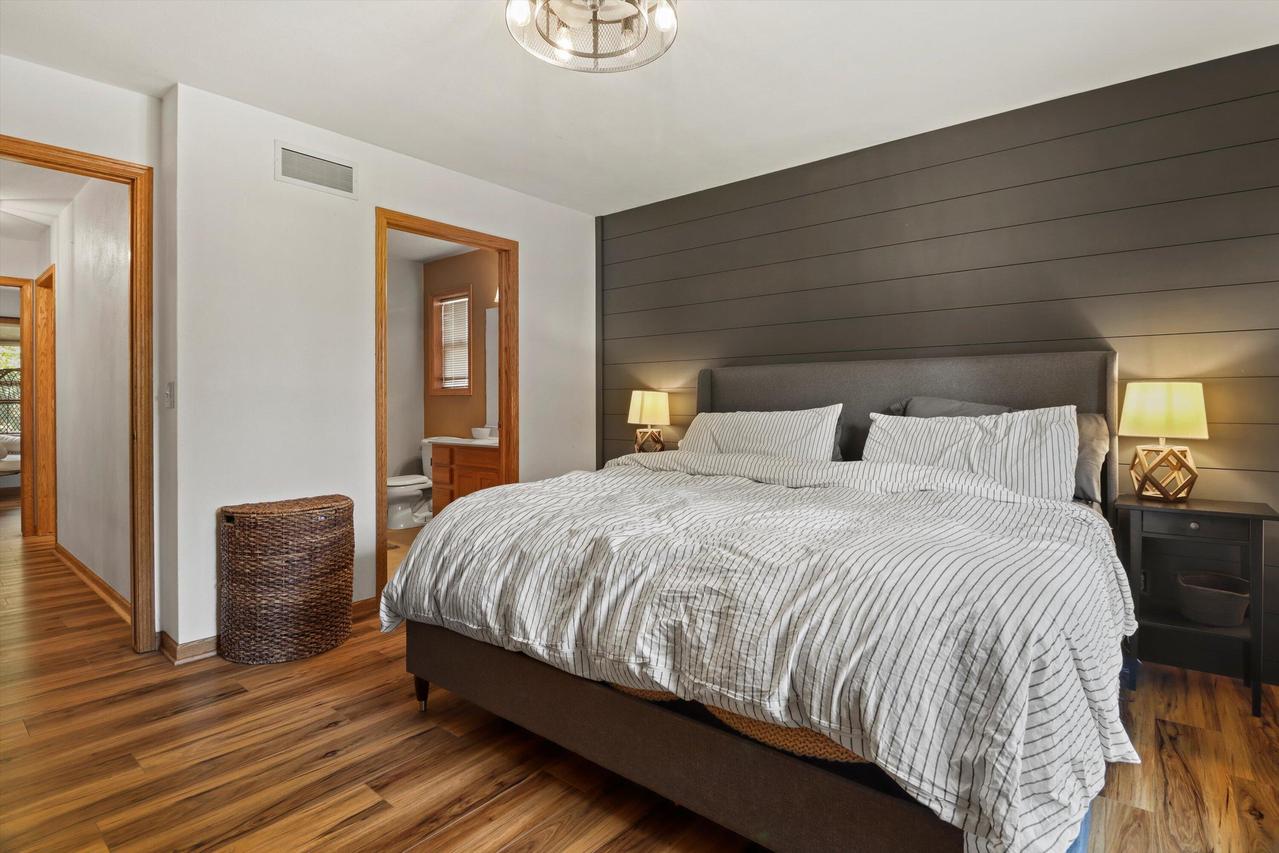 Fantastic ranch home in desirable Whitewater neighborhood, and better yet...no HOA or dues! This home is adorable and move-in ready for the next buyer. Cosmetic updates galore, from painted kitchen with high-end quartz countertops, custom brick wall and special millwork throughout gives the home that HGTV designer touch. Laundry is conveniently located on the main floor and large 2 car attached garage is the cherry on top. Primary bedroom features double closets and an attached full bathroom. Additional living and entertaining space in the finished lower level. Watch the kids and pets play in the fully fenced yard from your fantastic covered porch....perfect for hanging out rain or shine! One-year home warranty included for buyer's peace of mind!