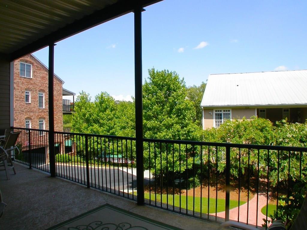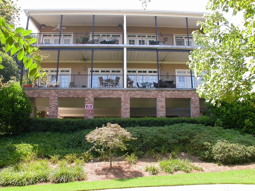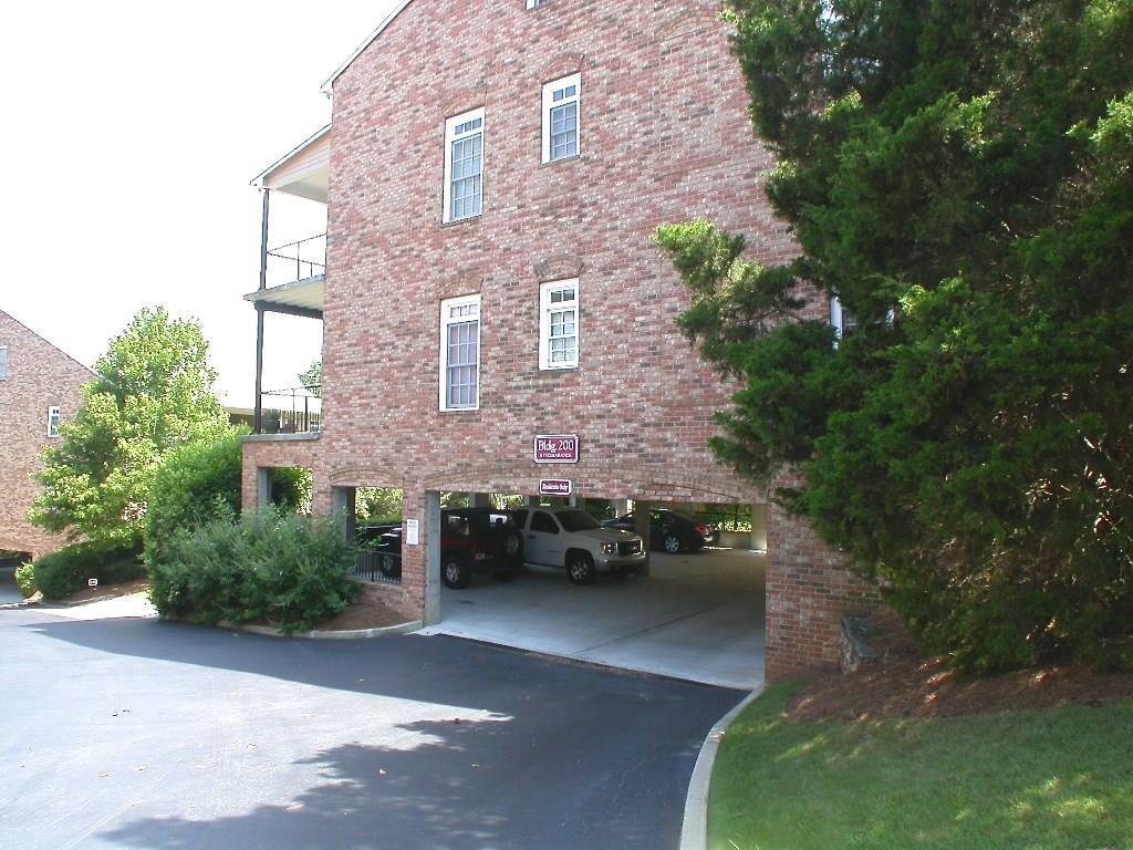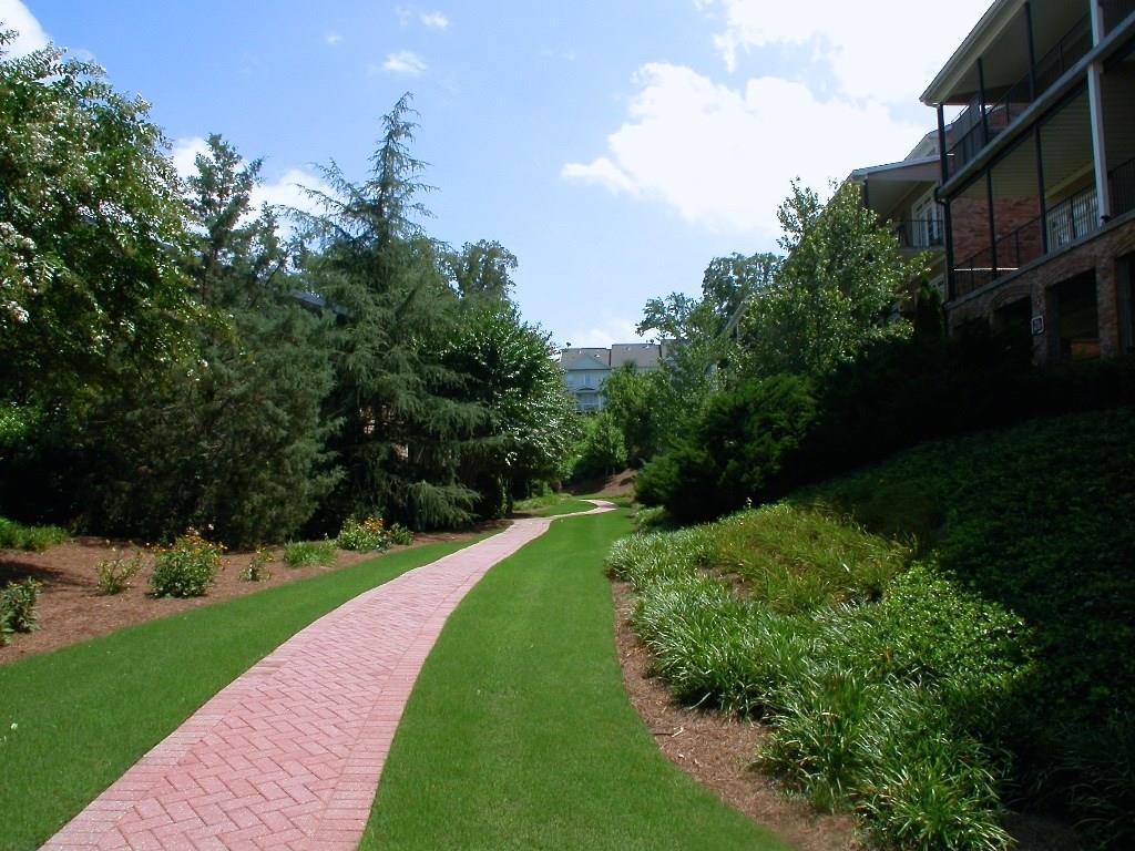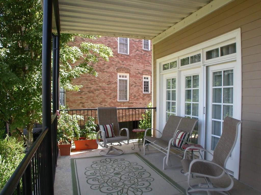 Amazing Roswell Sq location ~ walk to restaurants, shops & live music! Shows like a model w/NEW: gorgeous wood-look tile flr thru-out, HVAC system, SS kit appl plus over-sized sink & faucet, prof installed custom closet, enclosed blinds across rear drs & windows, water heater, toilets & int paint! Maple kit w/granite ctops, wine cabinet & brkfst bar! Trey ceiling & dbl shower in master. Din area opens to fam rm w/corner gas fp overlooking lrg veranda w/pocket screen drs. Convenient to guest parking, Vickery Creek Trail & more! Drive under parking incl 2 deeded spots.