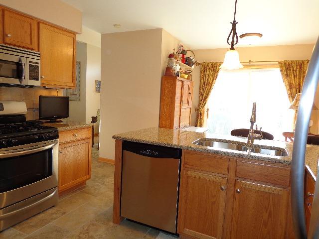Beautiful sun-drenched end unit! 1st floor master suite w/vaulted ceiling & private full bath! Soaring 2 story living room! Large loft perfect for fam rm or office! HUGE 18X6 custom walk in closet! Outstanding kitchen boasts granite counters, SS appls,eating area w/glass sliders to patio, Spring perennials! HOA to install new roof in 2014, NO special assessments! Convenient location close to schools, shopping & I-88