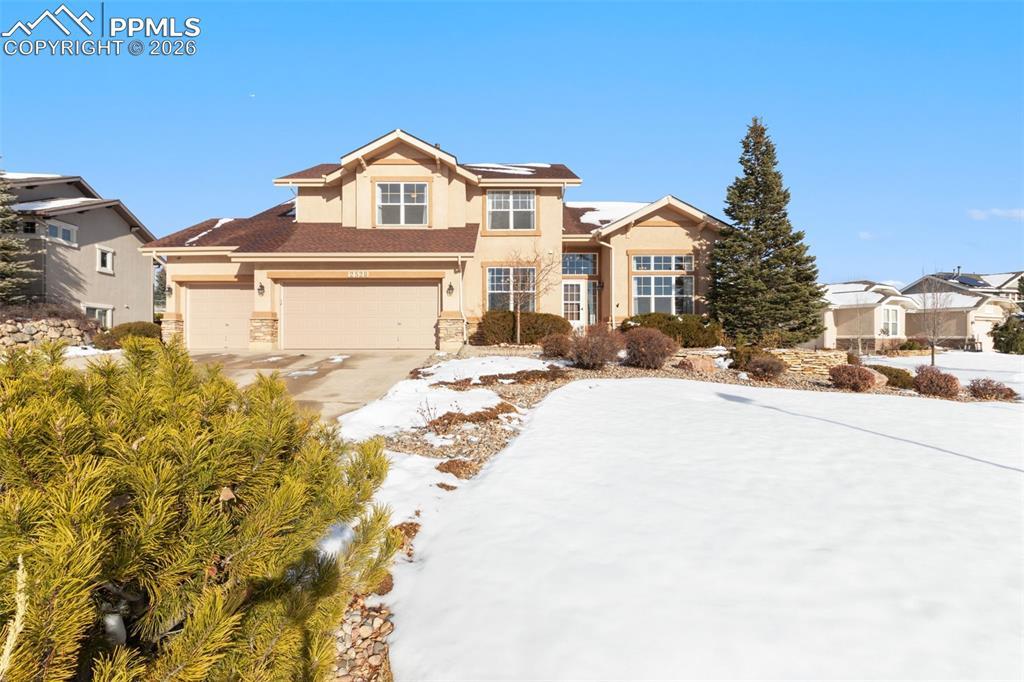 YOU WILL LOVE THIS LOCATION!! On the 9th Fairway. Pine Creek Golf Course and Spectacular Pikes Peak Views in front. Luxury 4-Bedroom, 4 Bath home with impressive Main level master suite. Check out the Breathtaking Custom tiled walk in master bath. Bright and Open with Vaulted Ceilings, Large Windows, Gourmet Kitchen with butler’s pantry, gas cooktop, Stainless Steel Appliances, Main-Level Office with French Doors and Pikes Peak Views! Upstairs you will find a Sunny Study/Loft area with Mountain Views, 2 Bedrooms with walk-in closets and Full Bathroom. Finished basement offers beautiful home Theater and another bedroom and bath, perfect for multi-generational living and guest quarters. Large corner lot is fully landscaped with Flagstone Patio for sunny morning coffee and entertaining your guest. Class-4 Roof, 2 New Central A/C units, 2 New furnaces one for each level, New paint and New plush carpeting. Lots of storage and built-ins. Close to highway, Denver and Air Force Academy. Let’s not forget about award winning District 20 Schools, parks, Lifetime Fitness and hiking/biking trails all within blocks of your home!!