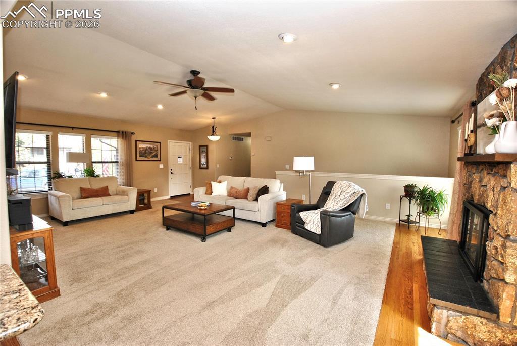 GORGEOUS!! Main-Level Living in Greencrest near Palmer Park. Completely renovated from top to bottom, this stunning brick rancher offers true main-level living in the heart of Greencrest. Step inside to Beautiful hardwood floors and an open-concept Great room featuring a striking Moss rock gas fireplace. The updated kitchen and dining area shine with granite countertops, cherry wood soft-close cabinetry, and stainless-steel appliances, all complemented by updated lighting and ceiling fans throughout. The spacious primary suite includes a beautifully tiled bath with granite accents. Two additional large bedrooms are located on the main level with New carpet, while the finished basement offers a huge fourth bedroom and an expansive family room with New LVT flooring, built-ins, and a second gas fireplace. Central A/C, 2 laundry areas, vaulted ceiling and recessed lighting, storm and vinyl windows and oversized 2 car garage. Situated on a quiet cul-de-sac, the nearly 1/3-acre yard is a private oasis filled with mature trees, lush landscaping, and vibrant flowering plants—perfectly enjoyed from the paver patio or composite deck.