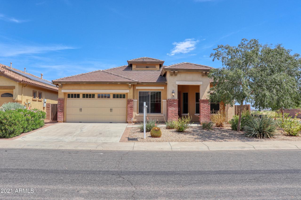 This incredible Fulton home in the beautiful community of Villago has it all! This home features a guest suite with its own full bathroom, 2 additional bedrooms, a den and a large Jack & Jill bath. The spacious living room features surround sound speakers, and a beautiful open concept floorplan. You'll enjoy cooking evening meals on your gas stove in a kitchen with tons of storage, granite countertops and a large island. Don't forget a large low maintenance backyard with mountain views that will take your breath away! Don't wait to view this spectacular Arizona retreat, it won't last long!