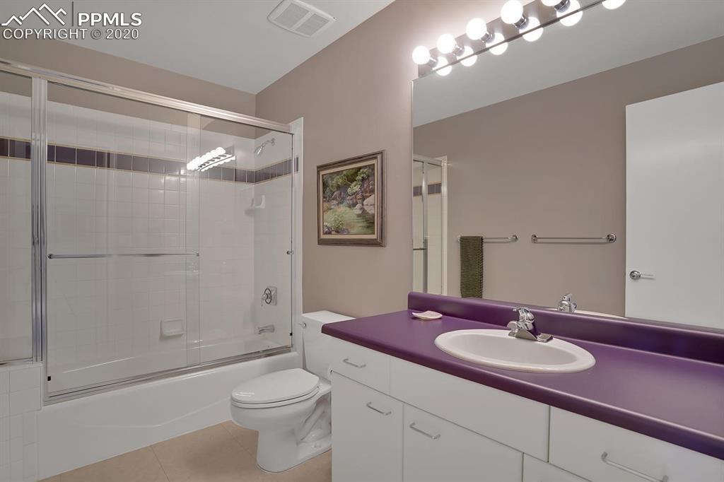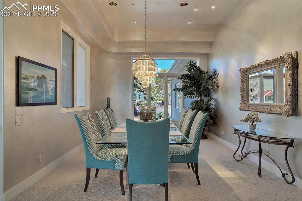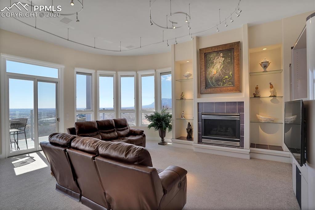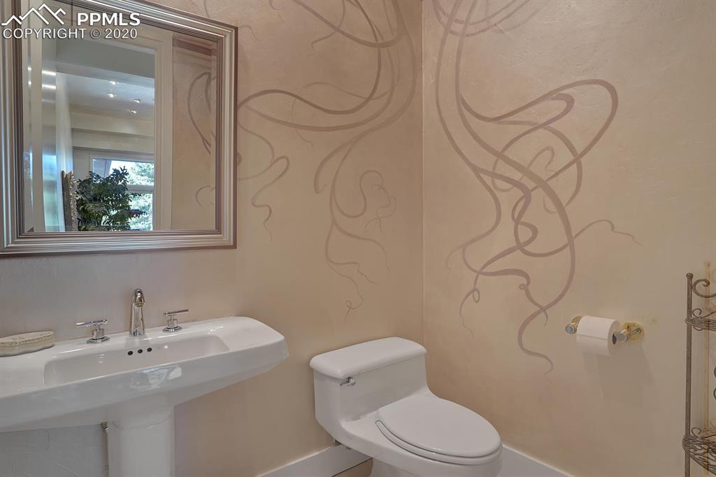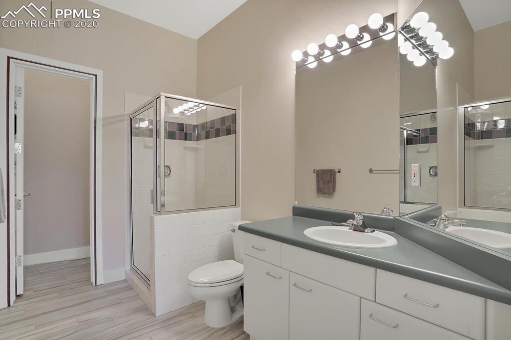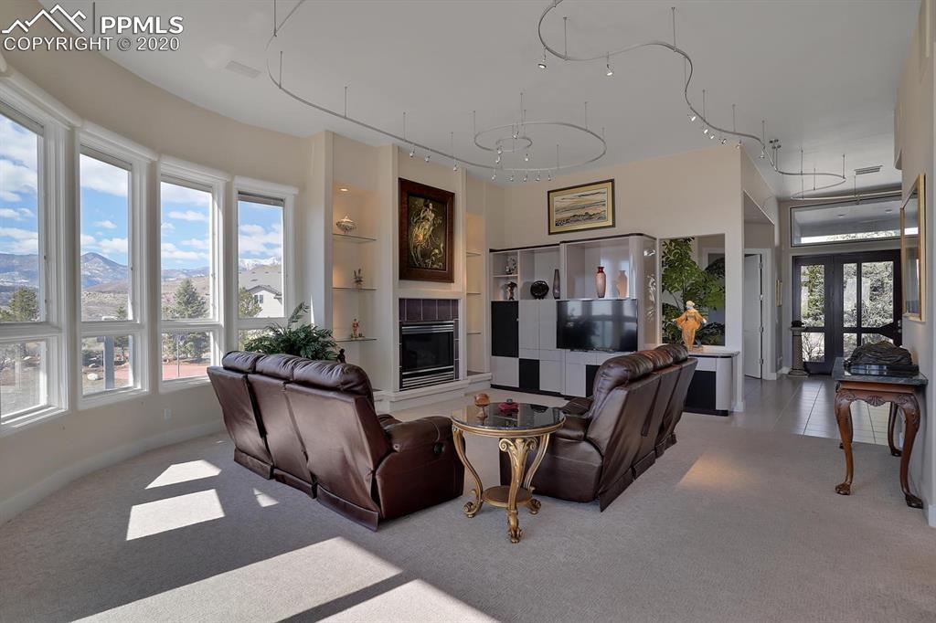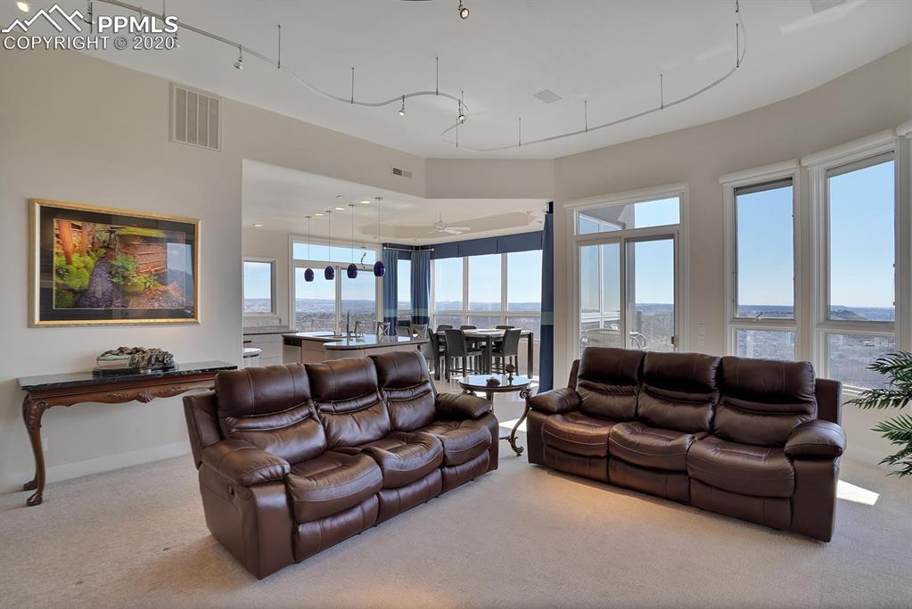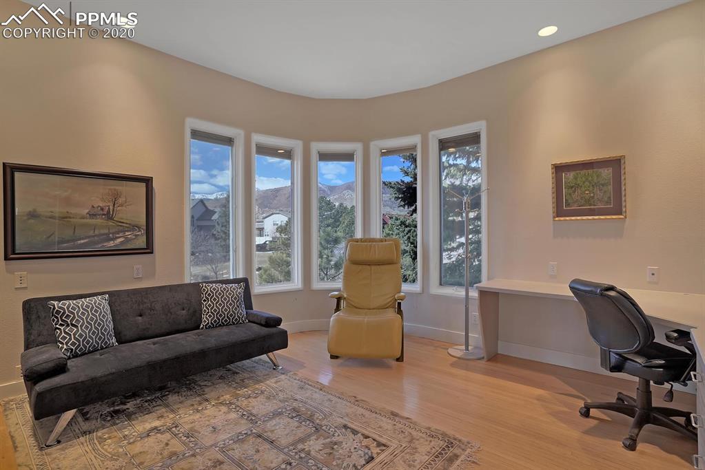 TOP OF THE WORLD VIEWS OF PIKES PEAK, COLORADO SPRINGS as far as you can see. 1.41 acres of scrub oak and natural beauty. Modern contemporary rancher with tinted windows, stucco and tile exterior. Inside gorgeous tile and wood floors, luxury gourmet kitchen with 2 dishwashers, top of the line appliances and huge eating area. Everything is PURE CUSTOM, cabinets, light fixtures, plumbing fixtures EVERYTHING. Beautiful master suite with dual entry, walk in closet and access to gigantic composite deck. Oversized garage includes RV Space. Full finished walkout basement with huge bar, rec and entertainment areas. Bonus shop and storage plus wine cellar. Everything is here plus Radiant floor heat and Central A/C.