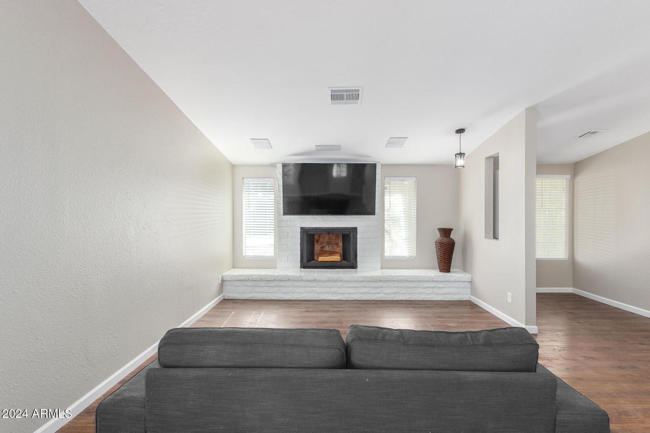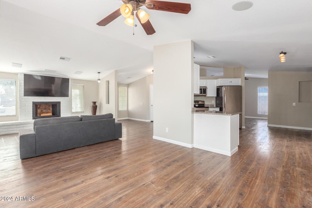 Discover this updated 3-bedroom, 2-bath home with a Den, nestled in a quiet cul-de-sac. With a 2-car garage, a fully fenced 1/4 acre + lot, and no HOA, it's perfect for privacy and freedom. The sparkling diving pool and spa are ready for year-round enjoyment, all set against the backdrop of fresh, 2024 paint and a brand-new roof. Vaulted ceilings and luxury vinyl plank flooring mixed with tile create a modern, welcoming feel. A light and bright kitchen, featuring white cabinetry, stainless-steel appliances and granite countertops, flows seamlessly into the great room with a cozy painted white brick fireplace. Both bathrooms have been tastefully updated with tile surrounds and newer vanities. The guest bath includes a skylight, creating a welcoming, airy space. The ensuite primary, . . . . . with a walk-in closet, opens directly onto a spacious, covered patio perfect for relaxing while overlooking the fenced Pebble Tec pool. Spacious laundry room with deep shelving, ideal for organized storage of household essentials. Cooled garage with large, dedicated storage room and convenient side door exit for easy access. The yard is a blank canvas for your personal touch, whether for entertaining or storage for all your toys. This home is truly a treasure. See it today! PERFECTLY LOCATED IN NW GLENDALE within the DESIRABLE PEORIA SCHOOL DISTRICT! Enjoy convenient access to nearby parks, shopping, dining, and entertainment options, all just minutes away. This home offers quick and easy access to Loop 101 freeway, making commuting a breeze. Experience a vibrant lifestyle in a sought-after neighborhood that has it all!