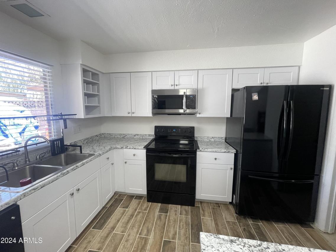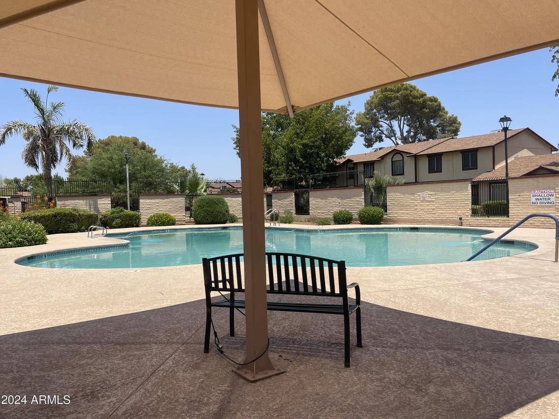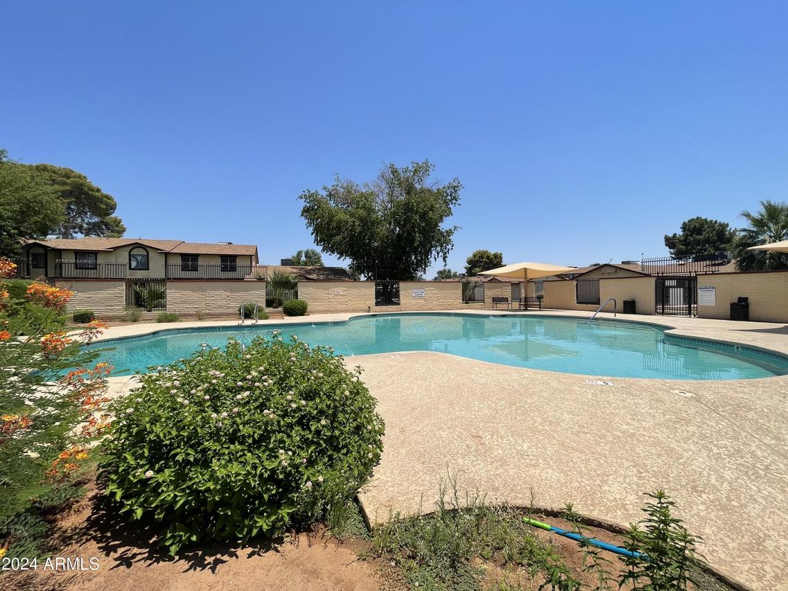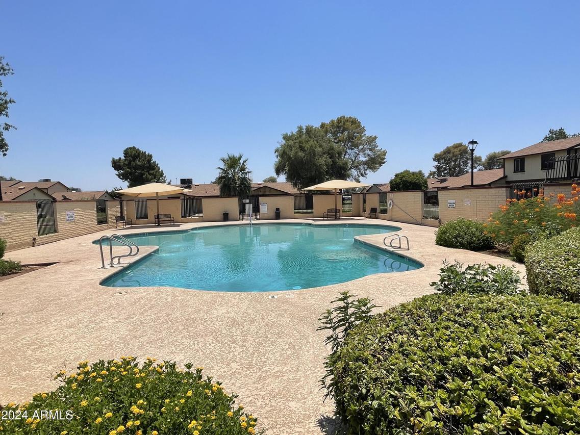 WELCOME HOME • 3BR 2BA 2C • SINGLE LEVEL TOWNHOME • GROUND FLOOR • END UNIT • CORNER, INTERIOR LOT SURROUNDED BY LUSH MATURE LANDSCAPE * REMODELED KITCHEN BOASTS WHITE SHAKER CABINETS • GLEAMING LAMINATE COUNTERTOPS • PENINSULA ISLAND • STYLISH WOOD-LOOK PLANK TILE FLOORS • ELECTRIC APPLIANCES • INSIDE LAUNDRY WITH WALK-IN PANTRY • SPACIOUS BEDROOMS WITH PRIMARY ENSUITE • HUGE BACK COVERED PATIO WITH MULTIPLE STORAGE SHEDS • COMMUNITY IS WELL-MAINTAINED * SPARKLING COMMUNITY POOL & CLUBHOUSE • 2 FENCED RV PARKING STORAGE LOTS • LOW HOA MAINTAINS ROOF, FRONT LANDSCAPE & EXTERIOR • FANTASTIC CENTRAL PHOENIX LOCATION • CLOSE TO SCHOOLS, PARKS, SHOPPING & DINING • QUICK AND EASY ACCESS TO I-17, US60 & I-10 FREEWAYS • DO NOT MISS THIS LITTLE TREASURE • SEE IT TODAY!