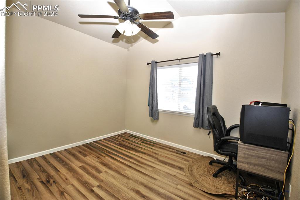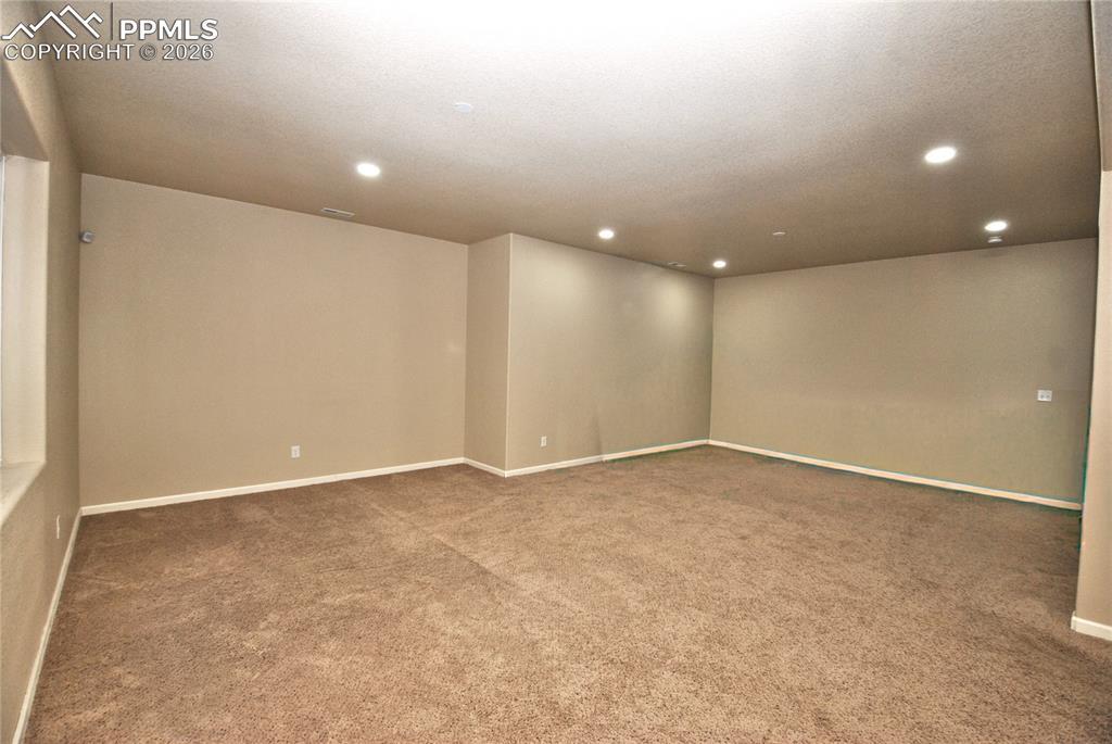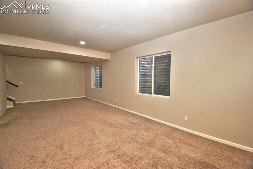 Charming Lorson Ranch home featuring newer LVP flooring on the main level, an open floor plan with vaulted ceilings, a gas fireplace, and abundant natural light from large windows. The updated kitchen boasts upgraded cabinetry, a gas range, stainless steel appliances, a wine refrigerator, granite countertops, and a spacious pantry perfect for both everyday living and entertaining. The primary bedroom offers a five-piece bath and a walkout to the back patio, creating a private retreat. The main floor also includes two additional bedrooms, a full bathroom, and a convenient laundry room, making this home ideal for true main-level living. The finished basement expands the living space with impressive 10-foot ceilings, a large family room, two additional bedrooms, a full bathroom, and ample storage. Additional features include surround sound, humidifier, water softener, a south facing drive way, and a new roof scheduled for installation at the end of March. Enjoy relaxing evenings on the covered front porch with unobstructed mountain views. The stucco-and-stone exterior adds to the home’s clean, well-maintained appearance and excellent curb appeal.