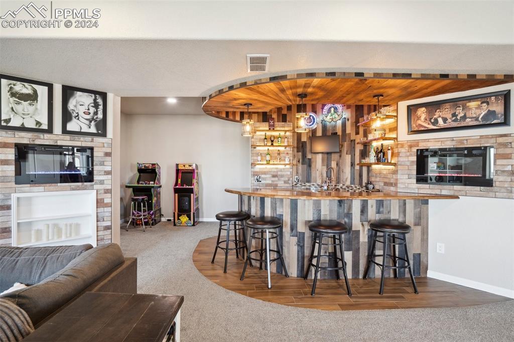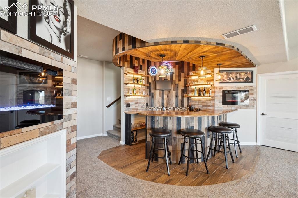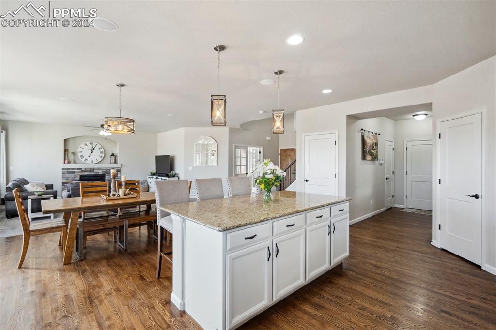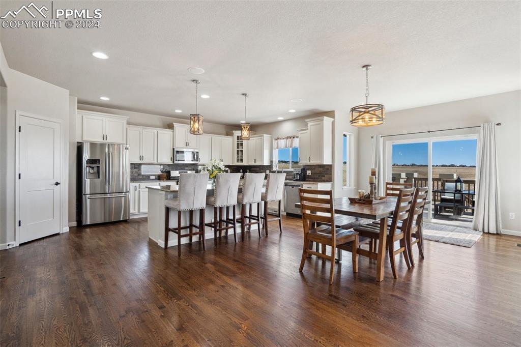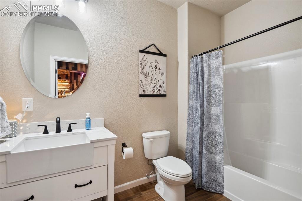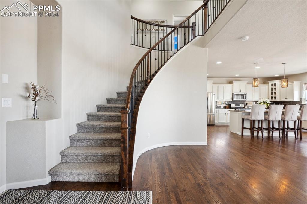 BETTER THAN A MODEL!! Brand New, Perfect condition inside and out. Professional landscaping greets you and brings you into this gorgeous home. Wood floors throughout the main level with open concept living area with spacious kitchen and island. Granite countertops gas range and upgraded Stainless Steel appliances accented by Custom antigied cabinets and upgraded light fixtures. Spectacular Mountain Views from the front and open space views in the back bordering creek, lake and walkways. Upstairs features 4 big bedrooms and luxury master suite with Custom tiled 5 piece bath with dual heads shower. The walkout basement showcases a Custom bar that you gotta see to believe with 2 fireplaces and entertainment family room. Another big bedroom with French doors and full bath. More extras include built in surround sound, Central A/C, hot tub, shed, LED custom exterior lights, tankless water heater. All in District 20 Schools!!