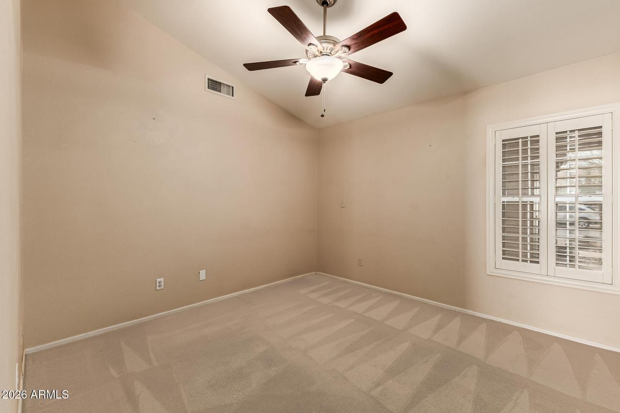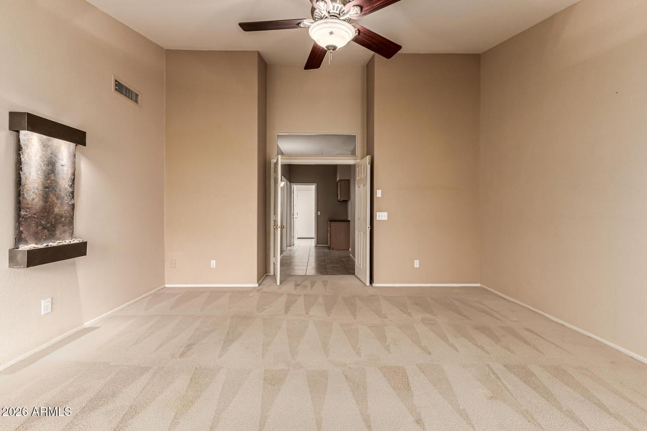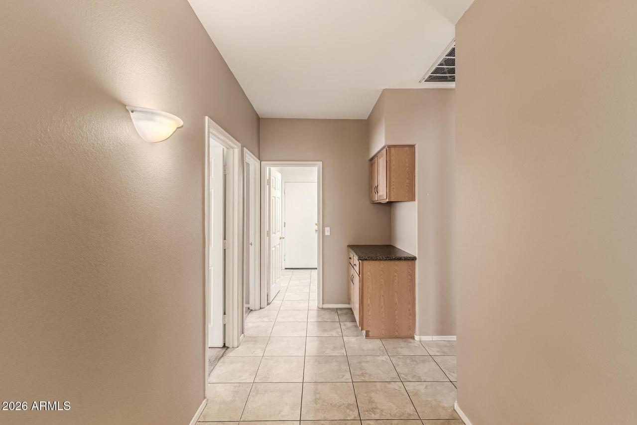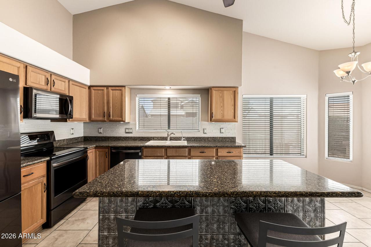 This well-maintained 4-bedroom, 2-bath home with a 3-car garage sits on a desirable corner lot and features attractive front stone elevation and a large covered front porch. The exterior has been freshly painted, and the block fence surround with interior stucco finish was recently painted as well, enhancing the overall curb appeal. Step inside to a welcoming formal living and dining room with vaulted ceilings and high-quality Polywood plantation shutters. The light and bright great room kitchen offers slab granite countertops, tile backsplash, center island, pantry, and newer black stainless-steel appliances--perfectly open to the inviting family room with a cozy fireplace and elegant hazelnut wood flooring. . . . The spacious primary suite features a private exit to the backyard patio, a walk-in closet, dual sinks, separate shower and soaking tub with a glass block window for natural light. The backyard is a true oasis with a sparkling PebbleTec pool, painted concrete patio, newer Kool Decking, lighted posts, and an elevated patio ideal for adding a gazebo or hot tub. Enjoy your own putting green, storage shed, paved side yard with garage access, plus mature orange and lemon trees. Additional highlights include an inside laundry room with utility sink and upper cabinetry, and a spacious 3-car garage offering abundant built-in storage cabinetry and a dedicated workspace. A beautiful home with incredible potential--just needing carpet and interior paint to make it your own. Ideally located near freeways, shopping, dining, Gilbert schools, parks, golf, and hiking trails. Don't miss this hidden treasure in Superstition Springs!