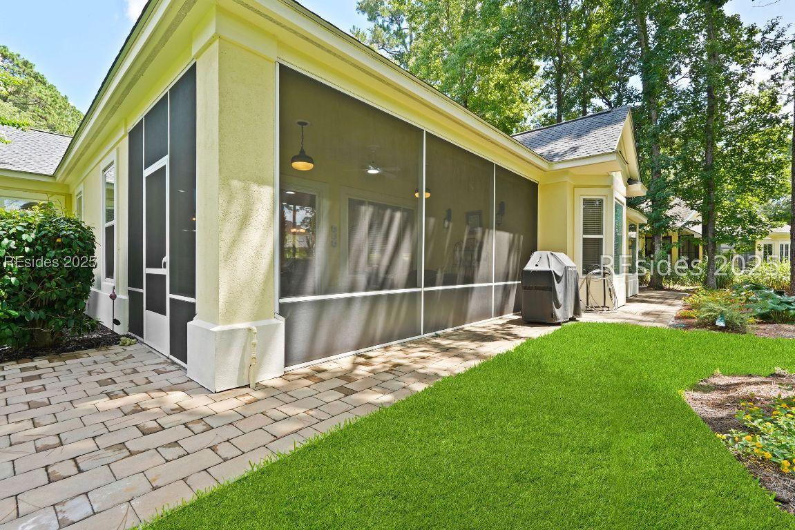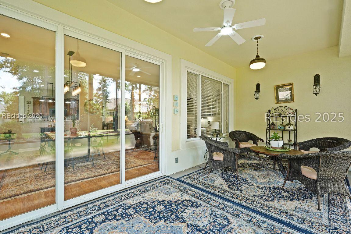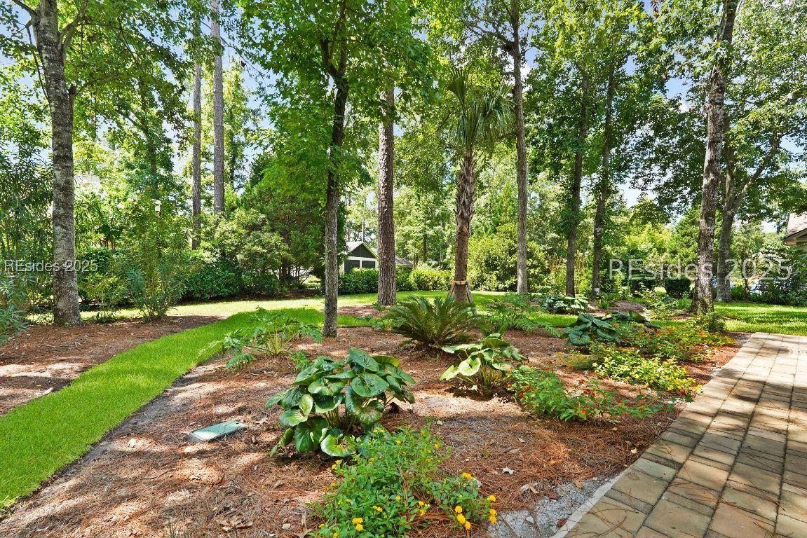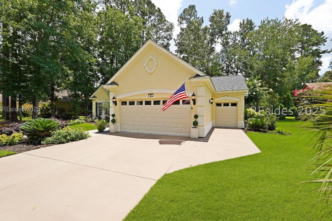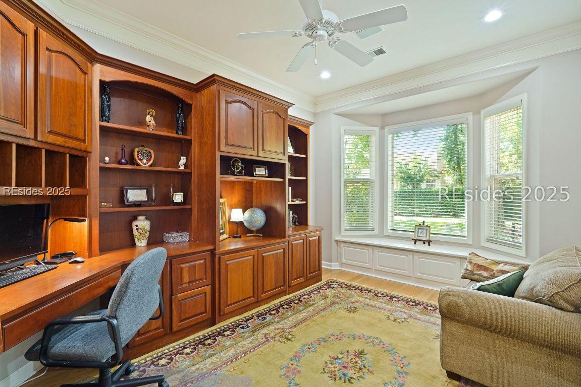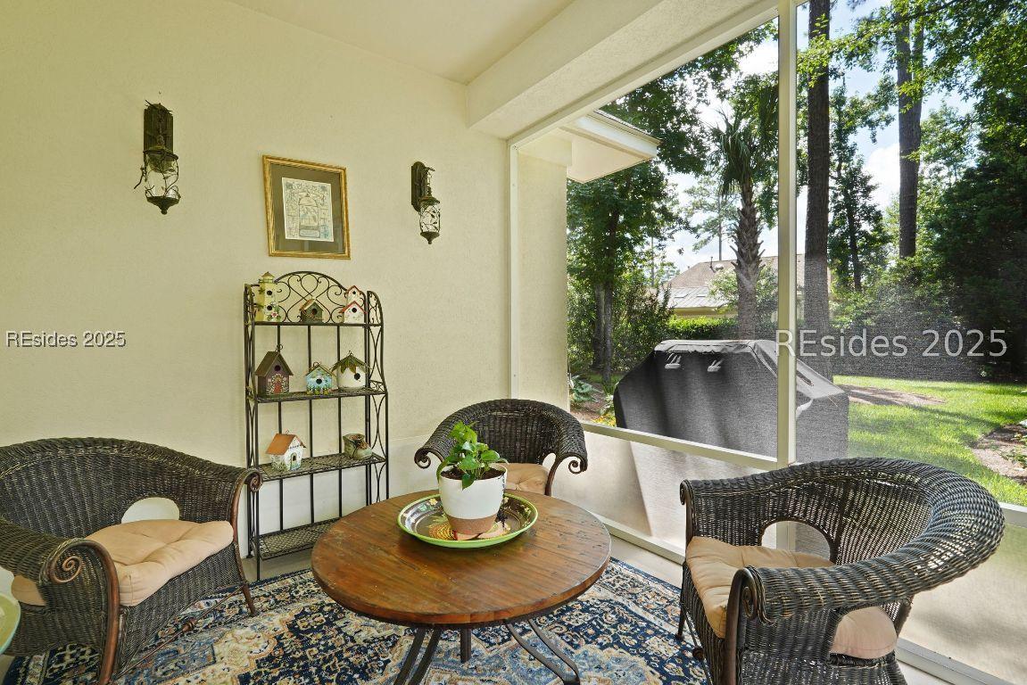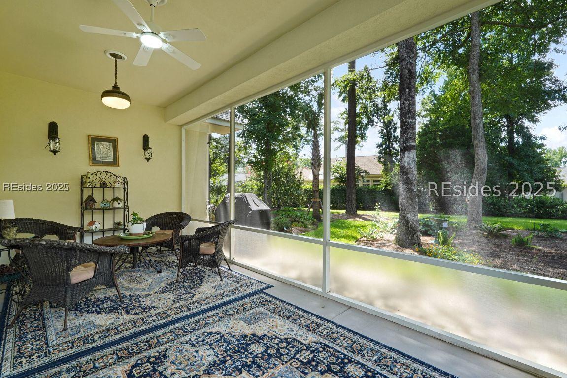 Beautiful 2 bed, 2 bath with an office that can be used as a 3rd bedroom! Lovely glass French door entry leads to an open floorplan with 10’ ceilings and huge kitchen. Great room has a gas fireplace with built-ins and crown moldings. Kitchen has lots of cabinets, granite countertops, large island with seating for 4, veggie sink. Walk-in panty and casual eating area completes the kitchen. Dining area overlooking the large screened in lanai. The office has built-ins and a bay window with storage in the seating area. Large primary bedroom suite with lovely views of the private backyard. The primary bathroom offers a dual sink vanity, separate shower, and soaking tub, plus a wonderful closet with built in organizers. Gorgeous and serene backyard with lovely landscaping, brick patio. New roof 2025, New custom shower in 2nd bath. New kitchen appliances, new ceiling fans, new recessed lights, new central vac, new garbage disposal, extensive fresh landscaping, Garage floor has new epoxy coating and garage LED lighting, 3 year old HVAC system. Two car garage with a golf cart bay!