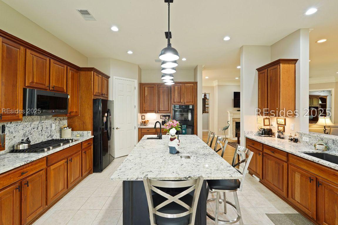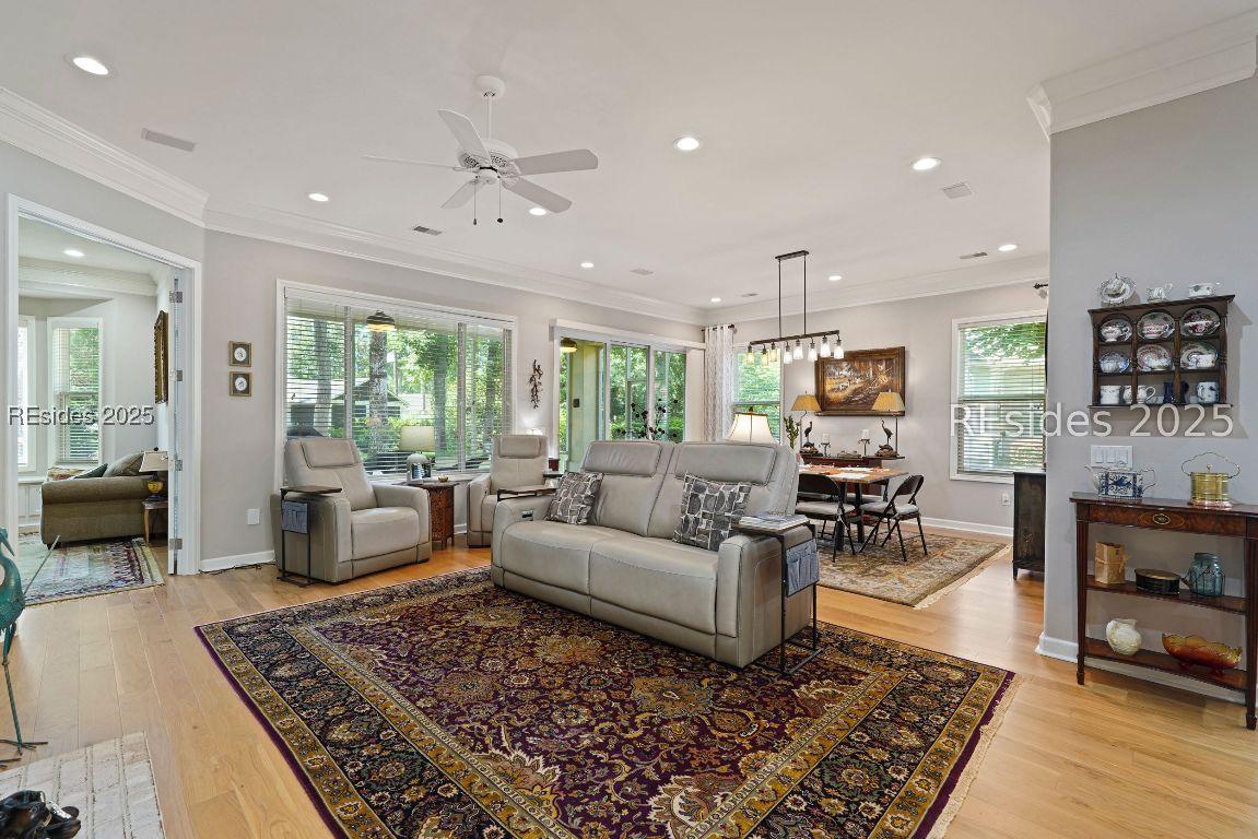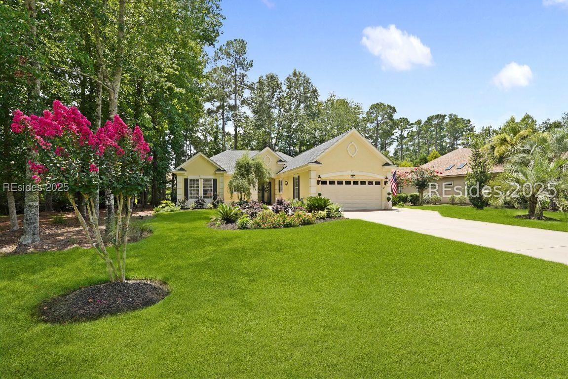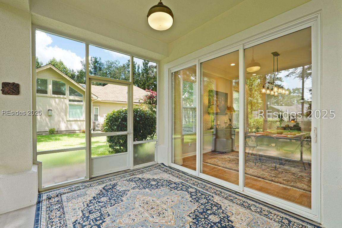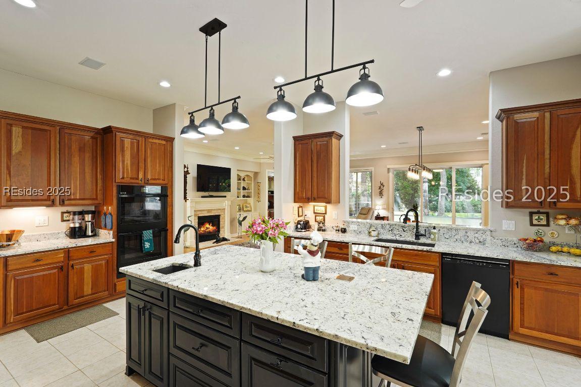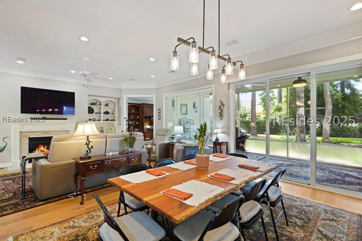 Beautiful 2 bed, 2 bath with an office that can be used as a 3rd bedroom! Lovely glass French door entry leads to an open floorplan with 10’ ceilings and huge kitchen. Great room has a gas fireplace with built-ins and crown moldings. Kitchen has lots of cabinets, granite countertops, large island with seating for 4, veggie sink. Walk-in panty and casual eating area completes the kitchen. Dining area overlooking the large screened in lanai. The office has built-ins and a bay window with storage in the seating area. Large primary bedroom suite with lovely views of the private backyard. The primary bathroom offers a dual sink vanity, separate shower, and soaking tub, plus a wonderful closet with built in organizers. Gorgeous and serene backyard with lovely landscaping, brick patio. New roof 2025, New custom shower in 2nd bath. New kitchen appliances, new ceiling fans, new recessed lights, new central vac, new garbage disposal, extensive fresh landscaping, Garage floor has new epoxy coating and garage LED lighting, 3 year old HVAC system. Two car garage with a golf cart bay!