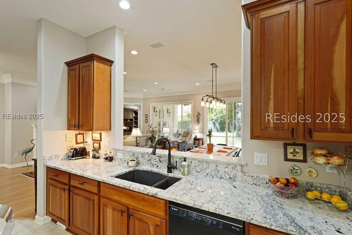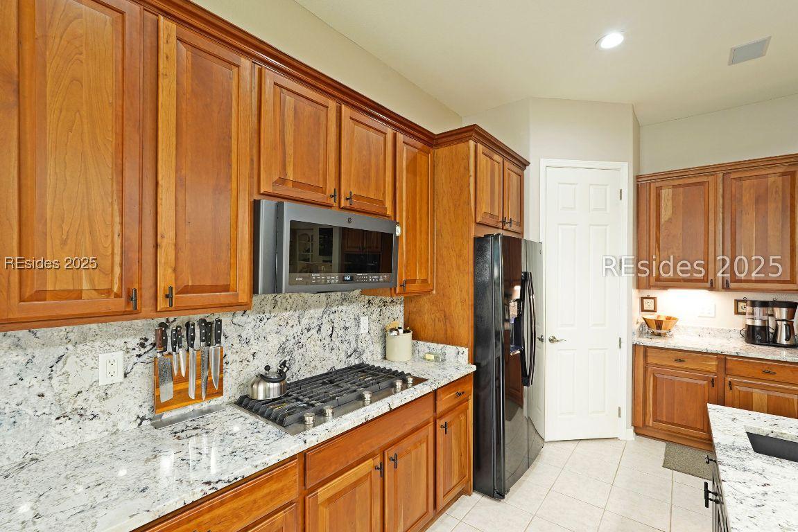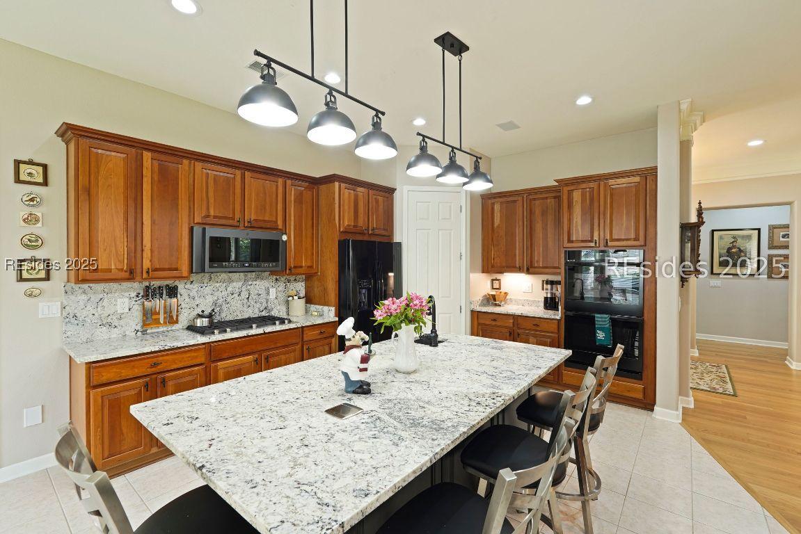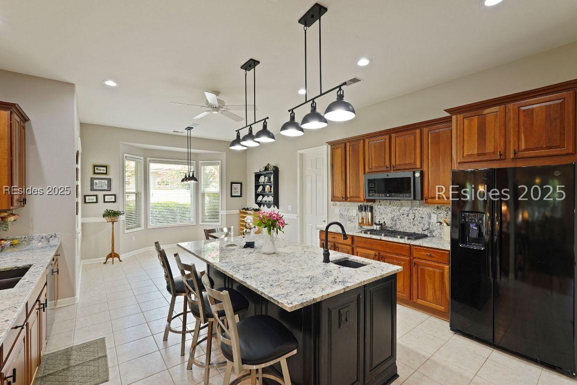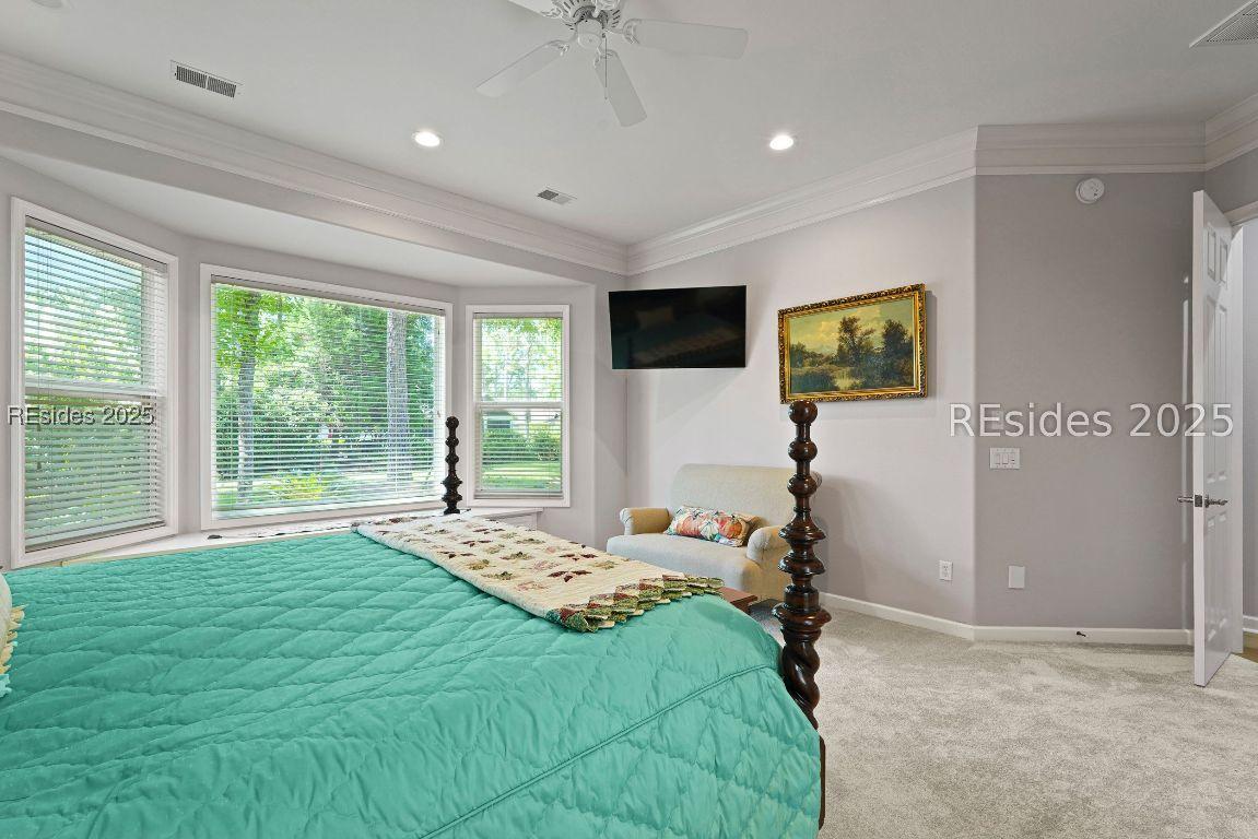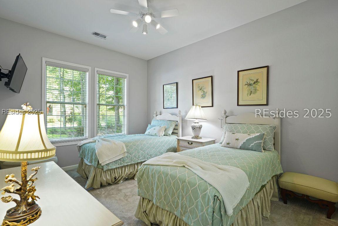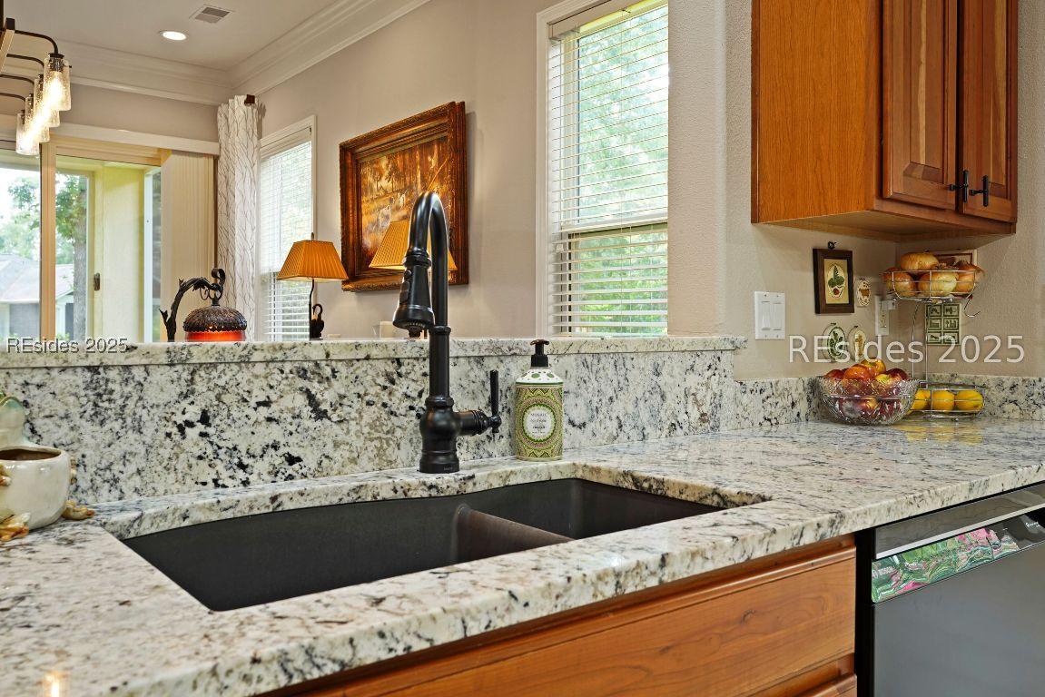 Beautiful 2 bed, 2 bath with an office that can be used as a 3rd bedroom! Lovely glass French door entry leads to an open floorplan with 10’ ceilings and huge kitchen. Great room has a gas fireplace with built-ins and crown moldings. Kitchen has lots of cabinets, granite countertops, large island with seating for 4, veggie sink. Walk-in panty and casual eating area completes the kitchen. Dining area overlooking the large screened in lanai. The office has built-ins and a bay window with storage in the seating area. Large primary bedroom suite with lovely views of the private backyard. The primary bathroom offers a dual sink vanity, separate shower, and soaking tub, plus a wonderful closet with built in organizers. Gorgeous and serene backyard with lovely landscaping, brick patio. New roof 2025, New custom shower in 2nd bath. New kitchen appliances, new ceiling fans, new recessed lights, new central vac, new garbage disposal, extensive fresh landscaping, Garage floor has new epoxy coating and garage LED lighting, 3 year old HVAC system. Two car garage with a golf cart bay!